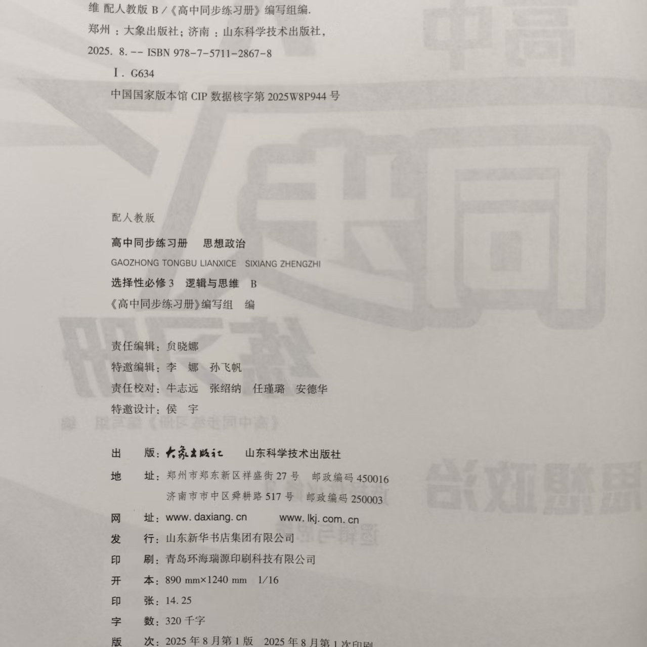 天猫2025秋B层人教版高中同步练习册思想政治选择性必修3逻辑与思维大象出版社山东科学技术出版社高二政治选修3同步练习册配人教版B层