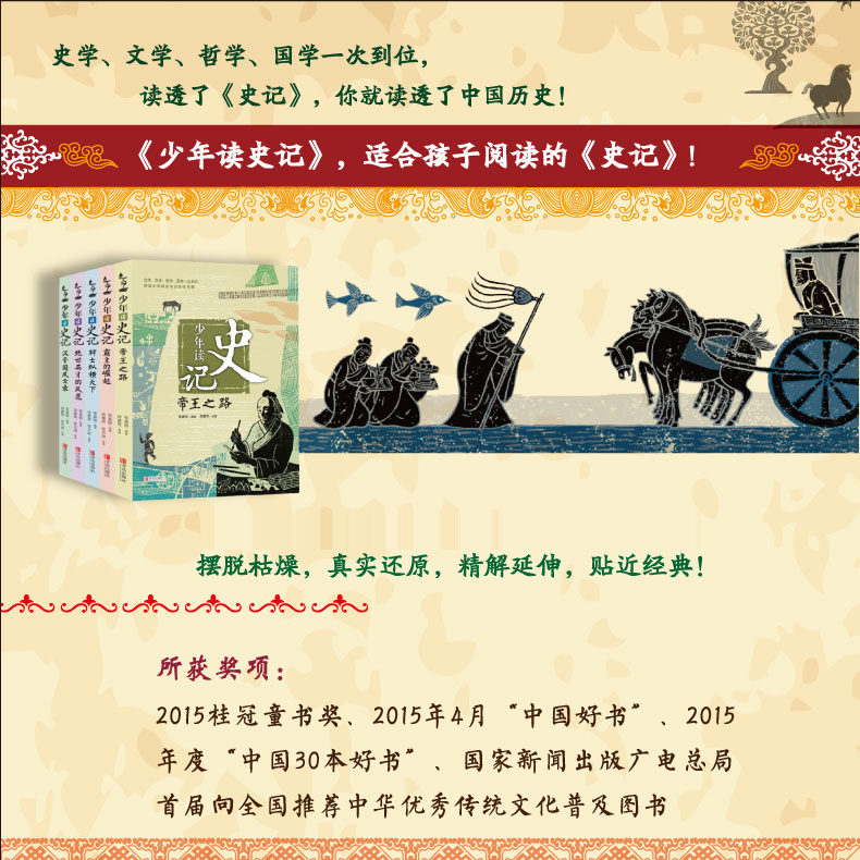 《大开本完整版·正版少年读史记》全5册,由知名儿童文学作家张嘉骅精心编著,专为小学生及初中生打造。本书以《史记》原著为基础,用生动有趣的语言、贴近青少年的视角,重新演绎历史人物与经典故事,兼具知识性与趣味性。大开本设计,排版清晰,图文并茂,阅读体验更佳。内容涵盖帝王、将相、刺客、游侠等多元人物,帮助青少年轻松理解中华五千年历史脉络,培养历史兴趣与思辨能力。正版保障,品质优良,是适合中学生课外阅读的优质历史启蒙读物,助力语文学习与人文素养提升。