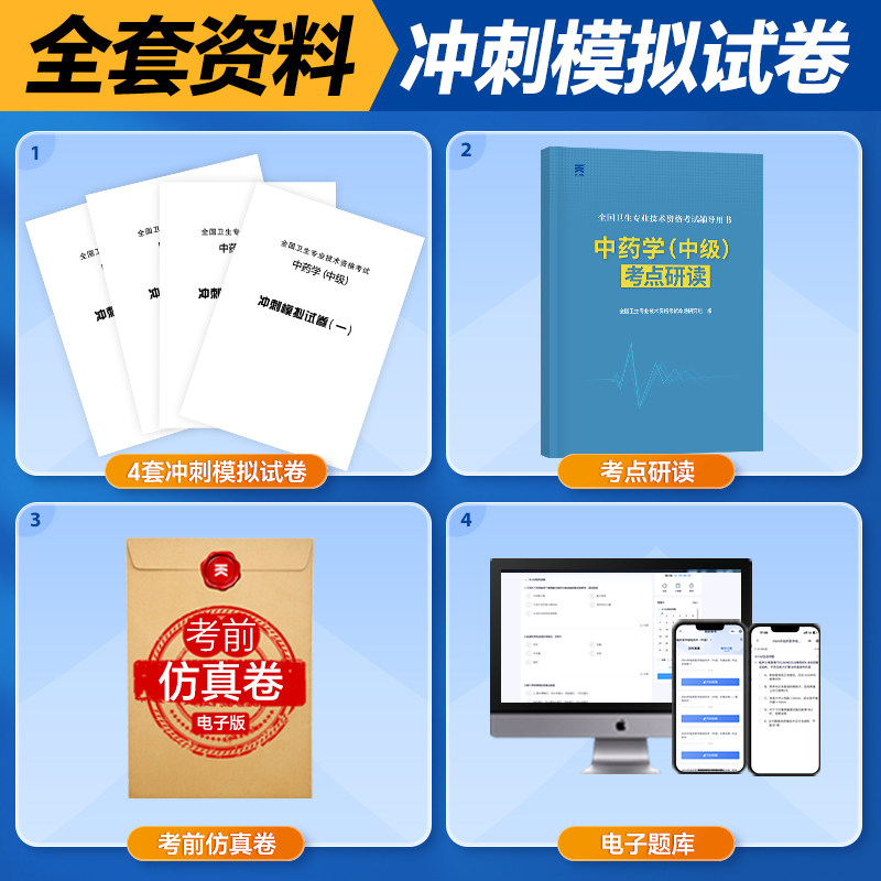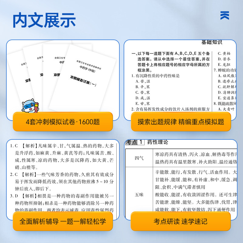 天猫2026年中药学中级资格考试考点研读及冲刺模拟试卷同步习题集主管药剂师士职称专业技术指导教材练习刷题书籍26人卫版军医试题2025