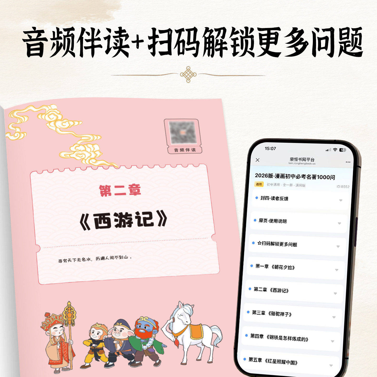 《漫画初中必考名著1000问》专为七八九年级学生打造,涵盖《简爱》《儒林外史》《西游记》等必读名著及四大名著核心考点。本书以问答形式梳理文学常识、高频考点与重点情节,搭配生动漫画,帮助学生轻松理解复杂内容。每册按年级分册,系统归纳上下册必读课外书知识点,辅以思维导图强化记忆,提升学习效率。内容紧扣中考考纲,聚焦人物形象、主题思想、艺术特色等常考题型,助力学生快速掌握名著精髓,夯实语文基础,轻松应对考试,是初中生名著学习的得力助手。