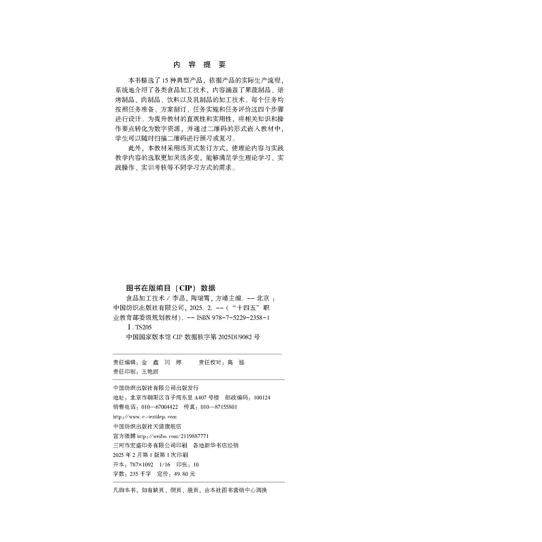 天猫食品加工技术 本书可作为职业院校食品及相关专业的教材,也可供从事食品加工和管理的人员参考。