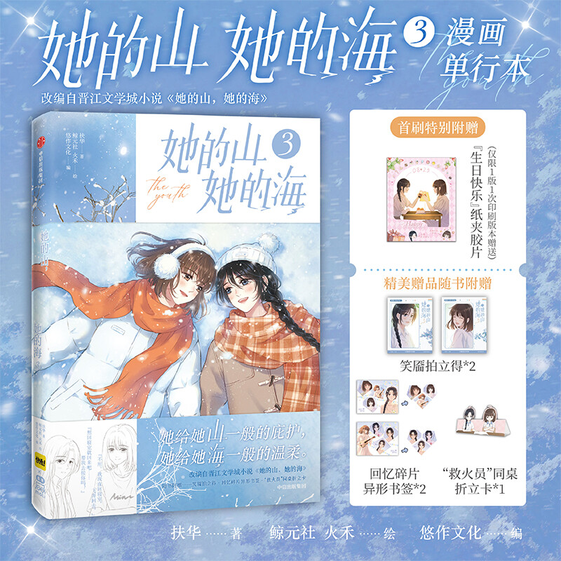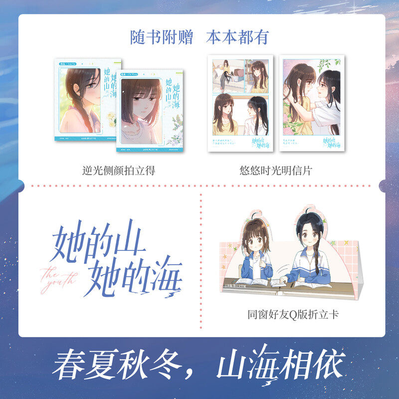 《她的山她的海》是扶华创作的畅销校园百合小说,讲述两位少女在成长困境中彼此救赎的温暖故事。小说以细腻笔触描绘青春的迷茫与坚韧,情感真挚动人。此次推出的全4册套装包含1册小说及3册漫画单行本,由原著作者扶华亲自监修,将文字意境完美转化为视觉艺术。漫画画风清新唯美,还原了小说中静谧山间与温柔海浪交织的治愈氛围。该作在晋江文学城广受好评,被誉为“双向救赎的典范之作”,与《亲爱的法医小姐》等作品共同展现女性情感的深度与力量。适合喜爱青春、治愈系百合题材的读者收藏阅读。