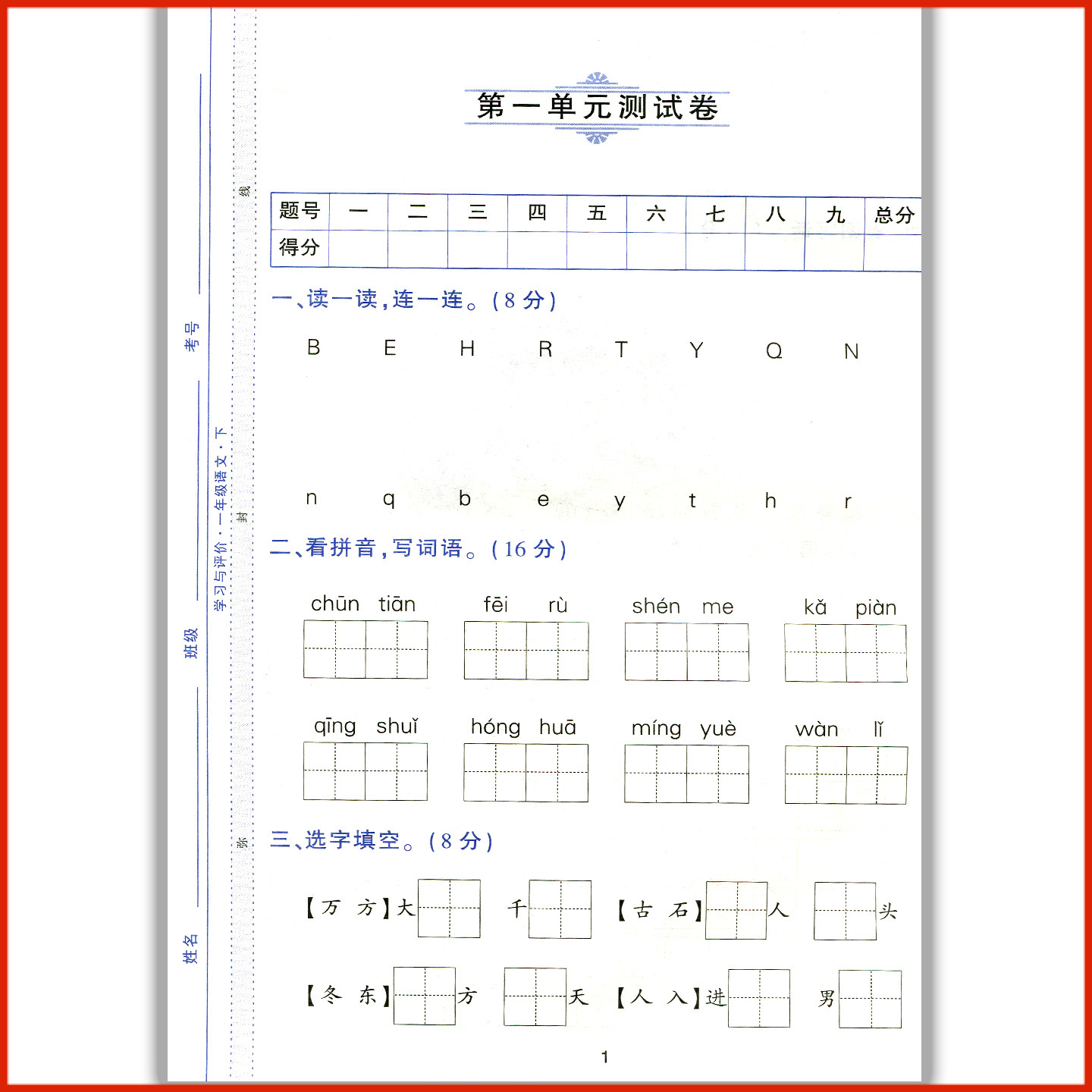2026部编版小学一年级下册语文《新课程学习与评价A版》是配合人教版语文教材编写的同步练习册,由陕西人民教育出版社出版。本书紧扣新课标要求,围绕一年级下册语文课本知识点精心设计,涵盖识字、写字、阅读、口语交际等内容,题型丰富多样,注重基础训练与能力提升相结合。每课设有“课前预习”“课堂演练”“课后巩固”等环节,帮助学生夯实基础、拓展思维。题目难度适中,图文并茂,符合低年级学生认知特点,便于家长辅导和教师检测学习效果,是提升语文素养、巩固课堂知识的有效辅助工具。