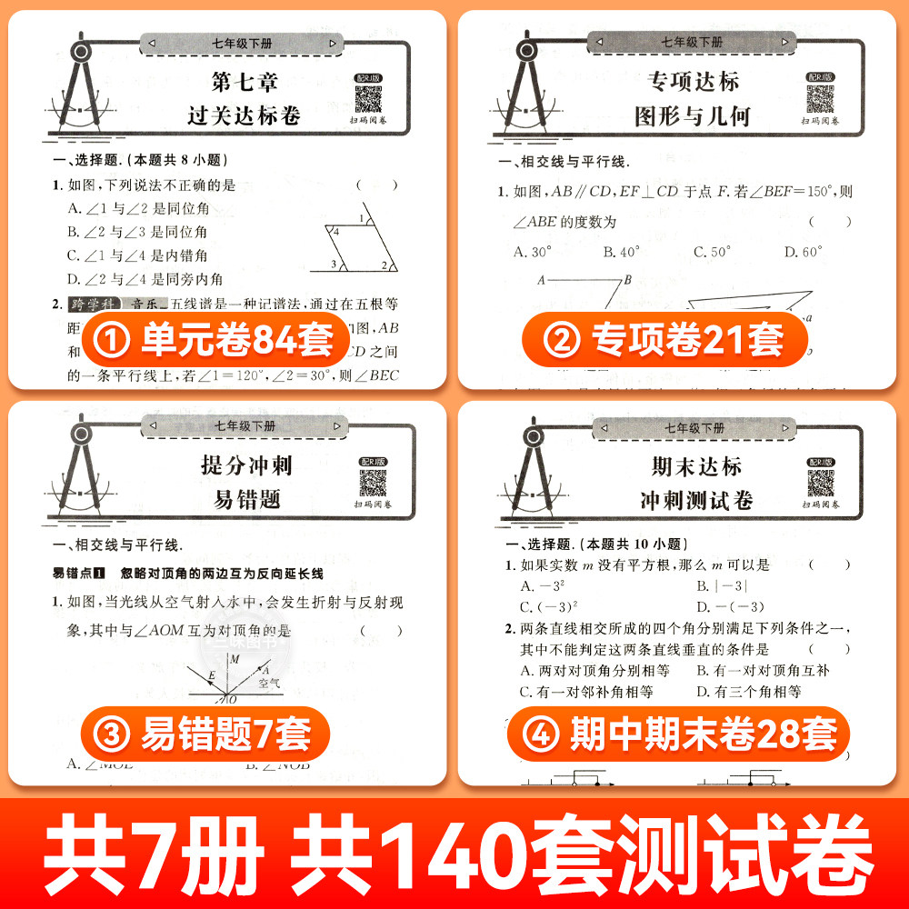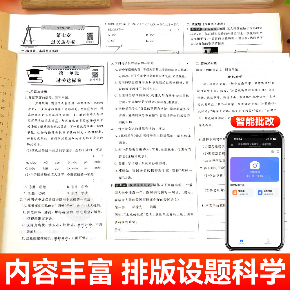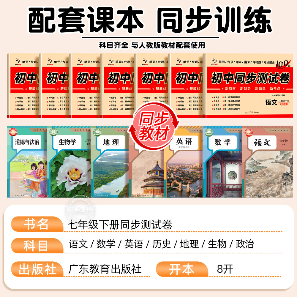 天猫【2026新版】七年级上下册试卷全套人教版 初一语文数学英语小四门必刷题初中教辅同步练习册 初中道德与法治生物地理历史期末卷子