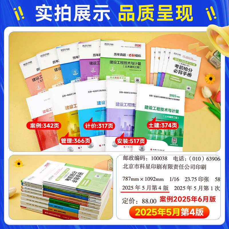 2026年一级造价工程师官方备考教材及历年真题试卷(土建、安装专业)由计划社权威出版,紧扣最新考试大纲,全面覆盖《建设工程计价》《建设工程造价管理》《建设工程技术与计量》《建设工程案例分析》四大科目。配套2025年最新版习题集与必刷题库,精选历年真题及高质量模拟题,助力考生掌握命题规律。同时提供水利、交通等专业方向专项训练,并附赠高清网课,名师精讲重难点,强化实战能力。本套资料体系完整、内容精准,是注册一造考生高效通关的必备学习工具,助您科学备考、一次取证。