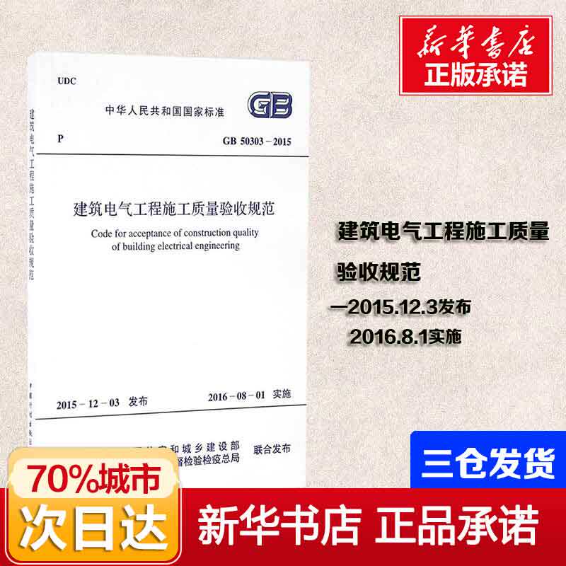 《GB50303-2015建筑电气工程施工质量验收规范》是中国计划出版社出版的国家标准,适用于新建、改建和扩建的工业与民用建筑电气工程施工质量验收。该规范系统规定了电气安装工程的材料、设备、施工及验收要求,涵盖变配电、供电干线、电气照明、防雷接地等关键环节,是保障建筑电气安全、功能可靠的重要技术依据。作为正版权威出版物,本书由新华书店旗舰店及文轩官网等正规渠道发行,内容准确、印刷精良,广泛用于设计、施工、监理及质量监督单位,对提升工程质量、规范行业标准具有指导意义,是建筑电气领域从业人员必备的技术工具书。