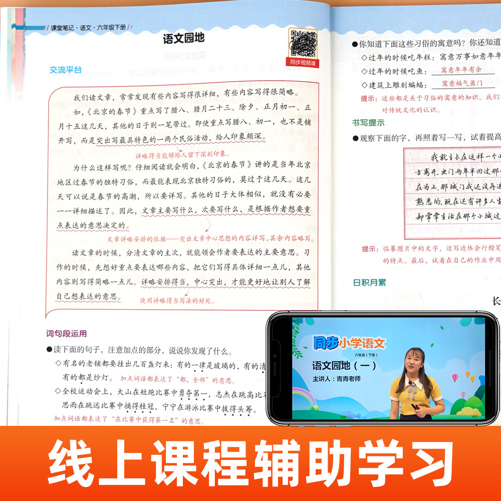 【2026年新版】六年级下册语文课堂笔记(人教版)是一本专为小学六年级学生精心编写的同步辅导资料。本书紧扣最新版人教版语文教材,逐课梳理重点字词、课文解析、段落大意、中心思想及写作技巧,帮助学生高效预习、复习与巩固课堂知识。内容结构清晰,配有思维导图和典型例题,强化理解与记忆。同时融入“小学学霸”学习理念,注重方法指导与能力培养,助力学生夯实基础、提升语文素养。无论是课前预习、课堂笔记补充,还是课后复习,都是学生和家长信赖的得力助手,是六年级语文学习的优质同步解读资料。