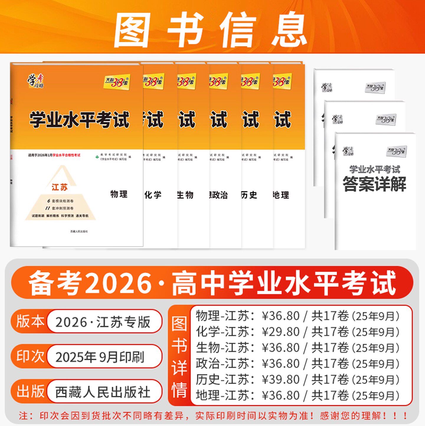 天猫2026版新教材天利38套江苏省高中高考学业水平考试物理化学生物政治历史地理高中适用于2026年1月合格性考试模拟卷检测试卷子总复