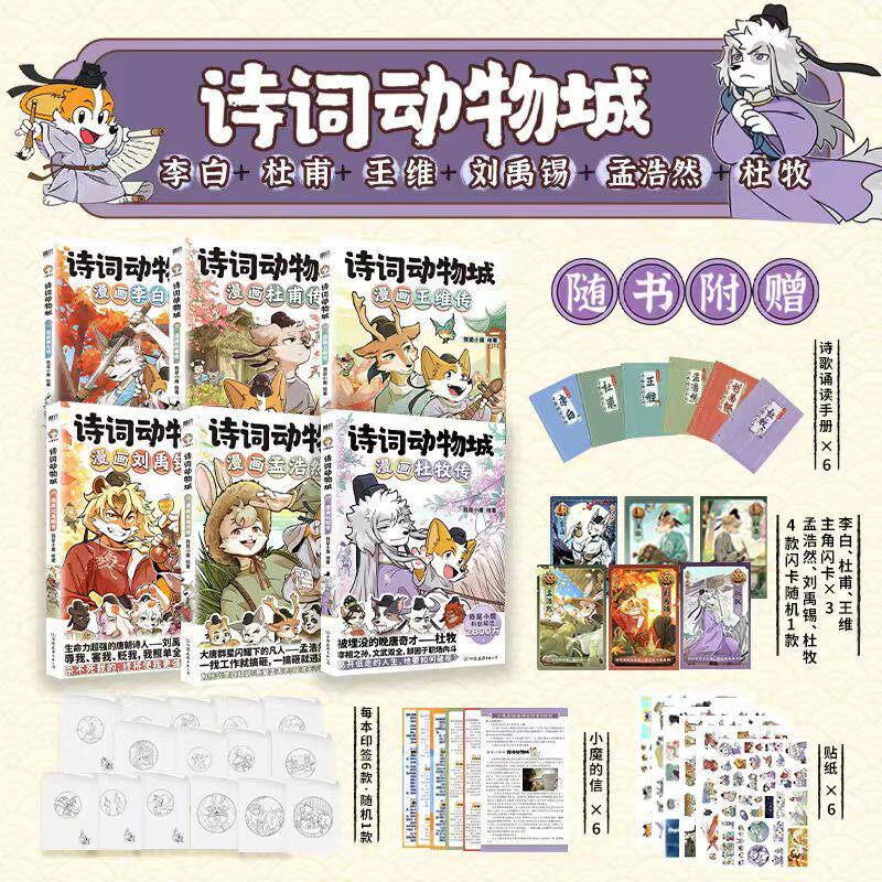 【博库专享冰箱贴】以趣味漫画形式开启诗词启蒙!《诗词动物城》将李白、杜甫、王维、杜牧、刘禹锡、孟浩然等唐代诗人化身可爱动物角色,打造萌趣十足的“动物诗国”。在“我是小魔当家,今天开始学买菜做饭”的生活化场景中,孩子们跟随小动物诗人轻松学诗,边玩边记。每首诗词搭配生动漫画与趣味解读,让经典不再枯燥。冰箱贴设计精巧,既是学习工具,也是家居点缀,寓教于乐,激发孩子对古诗词的兴趣与热爱,让传统文化在欢笑中传承。博库专享,收藏必备!