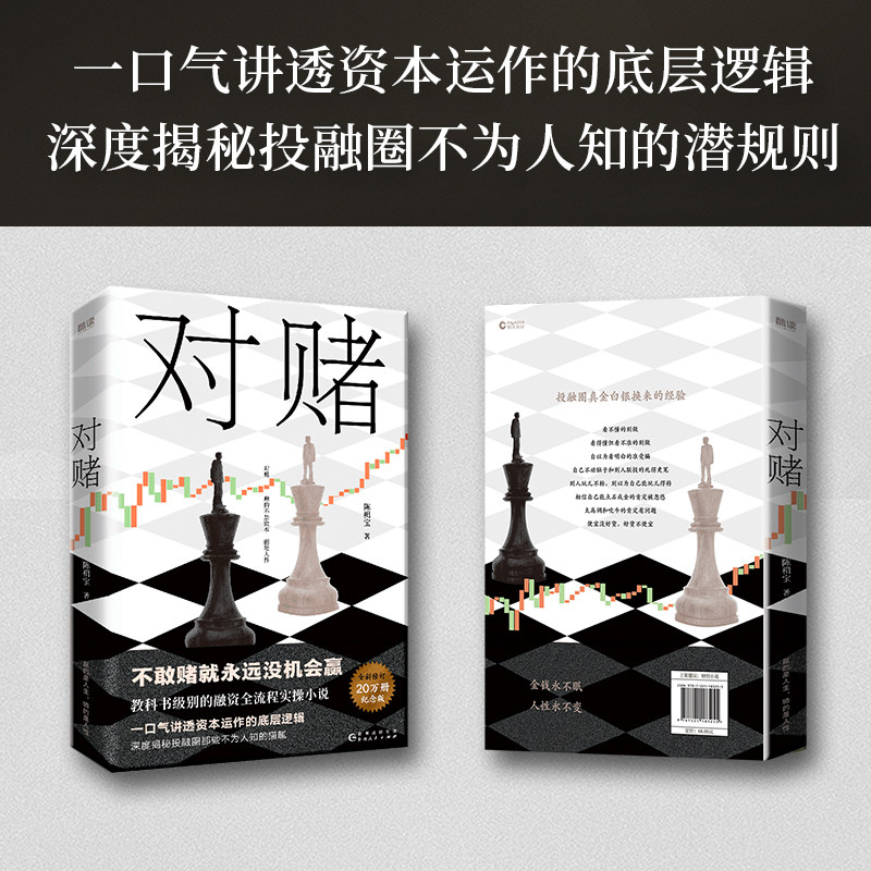 《现货】对赌》是陈楫宝创作的一部硬核财经商战小说,以真实融资案例为蓝本,深度还原企业融资、对赌协议、资本博弈的全过程。小说通过紧凑的情节与专业细节,揭示资本运作的底层逻辑,展现创业者与投资机构之间的激烈较量。作者兼具财经记者与实战经验,将复杂的金融术语融入跌宕起伏的商战叙事中,让读者在阅读中掌握股权设计、估值谈判、风险控制等核心知识。这不仅是一部引人入胜的小说,更是一本融资实操指南,适合创业者、投资人及财经爱好者深入品读,洞悉资本游戏的真相与规则。