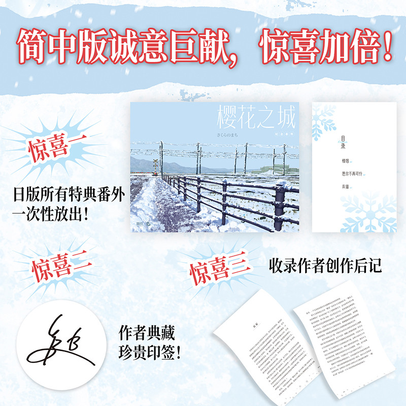 《樱花之城》是日本青春文学代表作家三秋缒暌违六年的诚意之作,继《恋爱寄生虫》《重启人生》后再度温暖人心的全新长篇。简体中文版特别收录作者亲笔印签、独家番外手册及深情后记,为读者呈现完整阅读体验。故事以樱花纷飞的静谧小镇为舞台,讲述少年在成长迷惘中邂逅命运之人,于时光流转间探寻爱与救赎的真谛。细腻笔触勾勒青春心事,温柔叙事治愈心灵,既是轻小说典范,亦是值得珍藏的青春文学佳作。实体书装帧精美,附赠特典,是献给所有曾相信美好的你的一份春日赠礼。