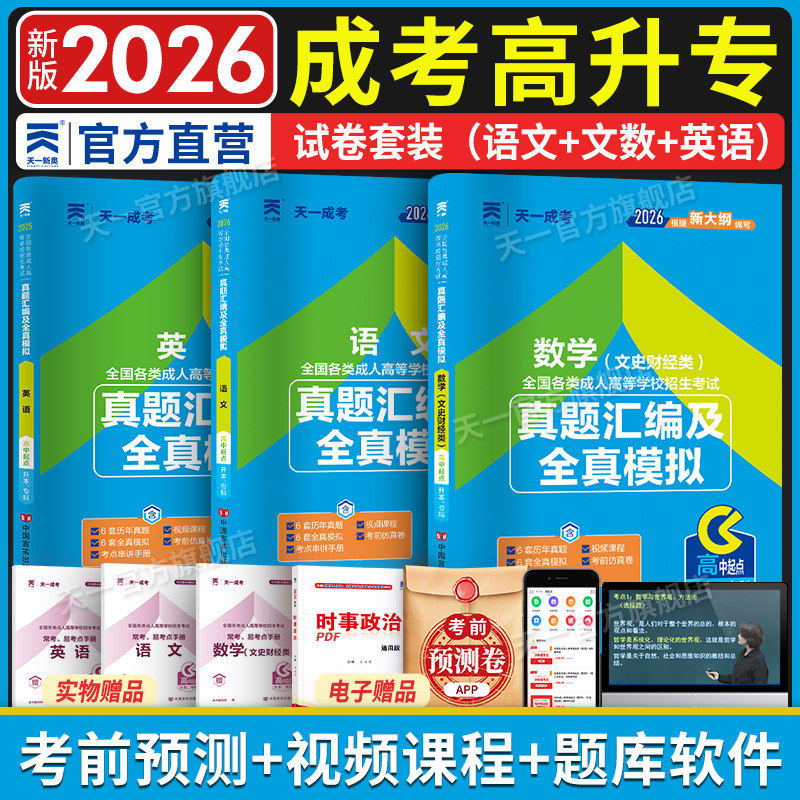 天猫高教版官方教材2026成人高考高升专文史财经类语文 英语 数学+历年真题模拟试卷全6本成考高升专高中起点升专科成考教材2026文科