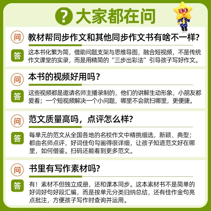 2026春新版《教材帮》小学同步作文系列,专为二至六年级学生打造,紧扣人教版语文教材,覆盖上下册内容。本书融合“同步作文”与“阅读理解”专项训练,帮助学生夯实写作基础,提升理解能力。每单元紧扣课本主题,提供写作方法点拨、范文赏析及素材积累,引导学生轻松掌握写作技巧。同时配备课前预习讲解,助力学生高效自主学习。由天星教育精心研发,内容科学系统,例题典型,练习分层,兼顾基础与拓展。图文并茂,趣味性强,是小学生提升语文综合素养的优质助学读物,让写作不再难,阅读更轻松。