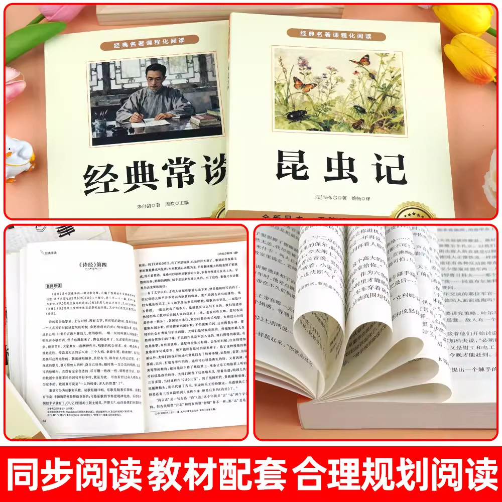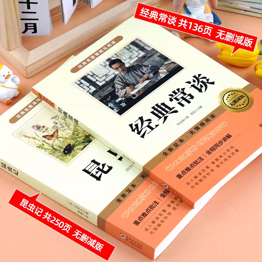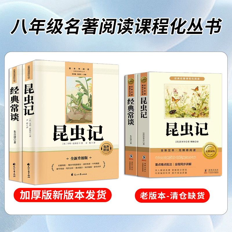 《经典常谈》由朱自清撰写,以通俗晓畅的语言系统介绍中国古代经典文献,是初中生了解中华传统文化的重要入门读物;《昆虫记》是法国昆虫学家法布尔的经典著作,以生动细腻的笔触记录昆虫的习性,兼具科学性与文学性。两书均为人教版八年级下册推荐阅读名著,与《钢铁是怎样炼成的》一同构成初中阶段重要的课外阅读体系。正版完整版内容权威,语言规范,有助于提升学生的文学素养、科学精神和人文底蕴,是初二学生拓展视野、深化思考的优质读物,值得认真品读与积累。