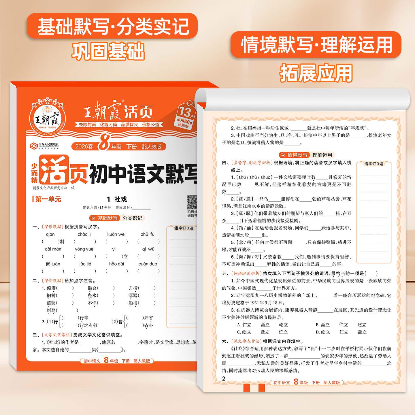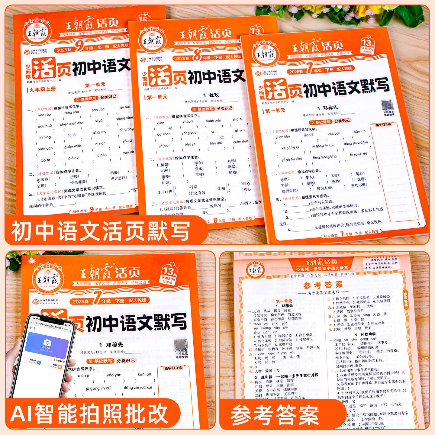 天猫2026新王朝霞活页初中语文默写每日一练七年级八年级九年级上册下册同步练习册初一二三知识点记忆背诵默写同步课本专项训练天天练
