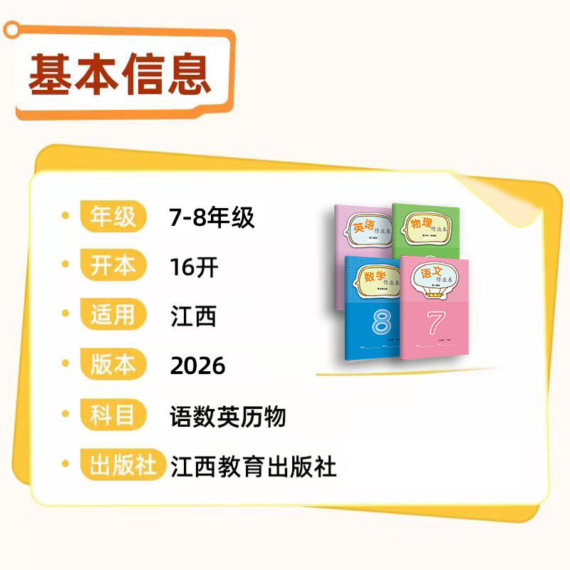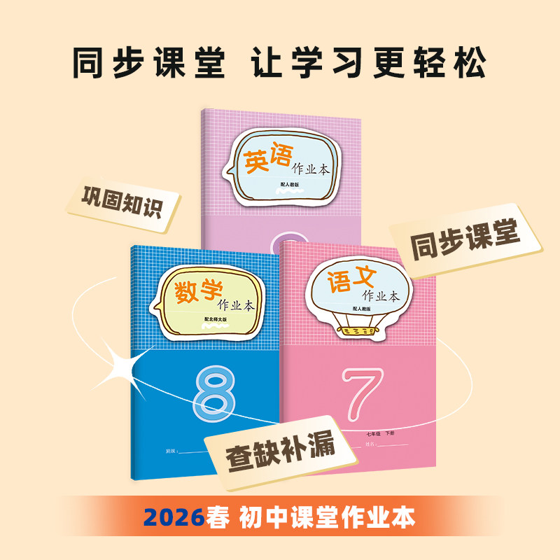 天猫2026年春新版课堂文字作业本7-8年级下册初中生物物理语文数学英语作业本学校同步教辅人教北师大河北少儿版练习册 江西教育出版社