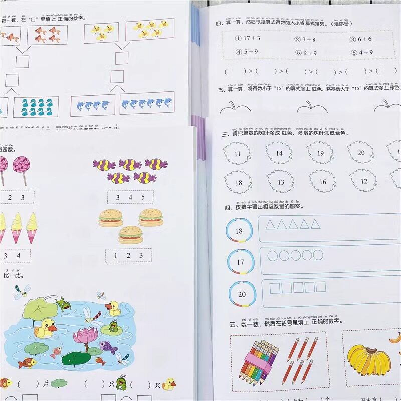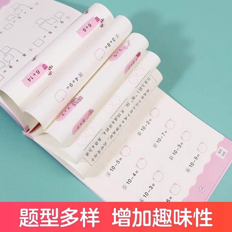 天爱德少儿 预备一年级笔画数字汉字拼音描红控笔训练加减法借十凑十法练习幼儿园升小学衔接语文数学专项习题册20以内加减法