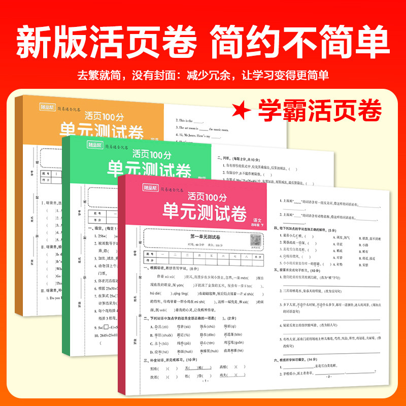 《小学生活页单元测试卷》涵盖语文、数学、英语三科,适用于人教版一至六年级上册和下册,是专为小学生设计的同步练习与检测资料。试卷紧扣教材知识点,题型丰富,难度适中,包含单元测试、期中期末真题及综合训练,帮助学生巩固基础、提升能力。每册按单元划分,活页设计便于拆分使用,适合课堂检测、家庭练习和考前复习。内容注重基础与拓展结合,尤其“基础全优卷”强化核心素养,助力学生夯实根基、稳步提分,是小学生日常学习与备考的理想辅助工具。