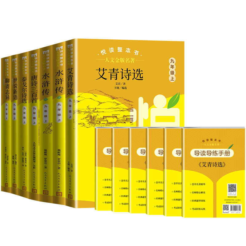 《艾青诗选》《水浒传》《世说新语》《泰戈尔诗选》是九年级上册统编语文教材“整本书阅读”推荐书目,由人民文学出版社推出的人文金版名著系列,均为原著完整无删减版本。该套书紧扣新课标要求,助力学生深入理解经典,提升文学素养与阅读能力。其中,《艾青诗选》展现现代诗歌的深沉力量,《水浒传》呈现英雄传奇与江湖义气,《世说新语》收录魏晋名士风雅言行,《泰戈尔诗选》则充满哲思与诗意之美。丛书编排严谨,注释精准,适合初中生自主阅读与课堂学习,是提升语文综合能力的重要读本。