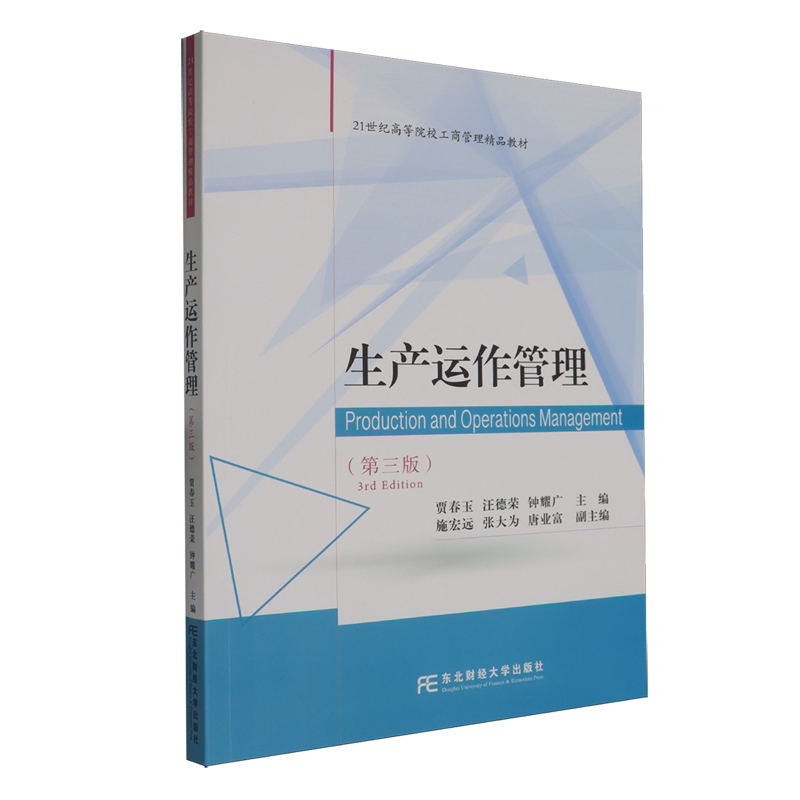 《生产运作管理(第三版)》是21世纪高等院校工商管理精品教材之一,由贾春玉主编,东北财经大学出版社出版(ISBN:9787565456466)。本书系统阐述了生产运作管理的核心理论与方法,涵盖生产系统设计、运营计划、质量控制、供应链管理及现代生产模式等内容。第三版结合国内外最新实践与研究成果,更新了案例与数据,强化了信息化、智能化背景下运作管理的应用。教材结构清晰,理论联系实际,注重培养学生分析与解决实际问题的能力。适合作为工商管理、物流管理、工业工程等专业本科生及MBA学生的教学用书,也可供企业管理人员参考使用,是一本兼具学术性与实用性的优秀教材。
