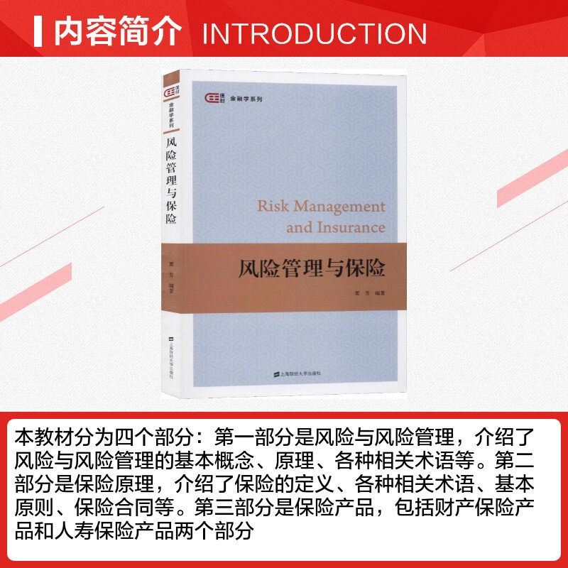 《风险管理与保险》由粟芳教授编著,是一本面向高校经管类专业学生的权威教材,由上海财经大学出版社出版,新华书店正版发行。本书系统阐述了风险管理的基本理论、方法与实务操作,涵盖风险识别、评估、应对策略及保险机制的应用,内容科学严谨、案例丰富,兼具理论深度与实践指导意义。作者结合国内外最新研究成果与行业动态,深入浅出地解析保险在风险转移中的核心作用,适用于本科生、研究生及金融保险从业者学习参考。该书不仅助力学生构建专业知识体系,也激励读者树立风险意识,提升应对不确定性的能力,是兼具学术价值与励志导向的优秀经管类教材。