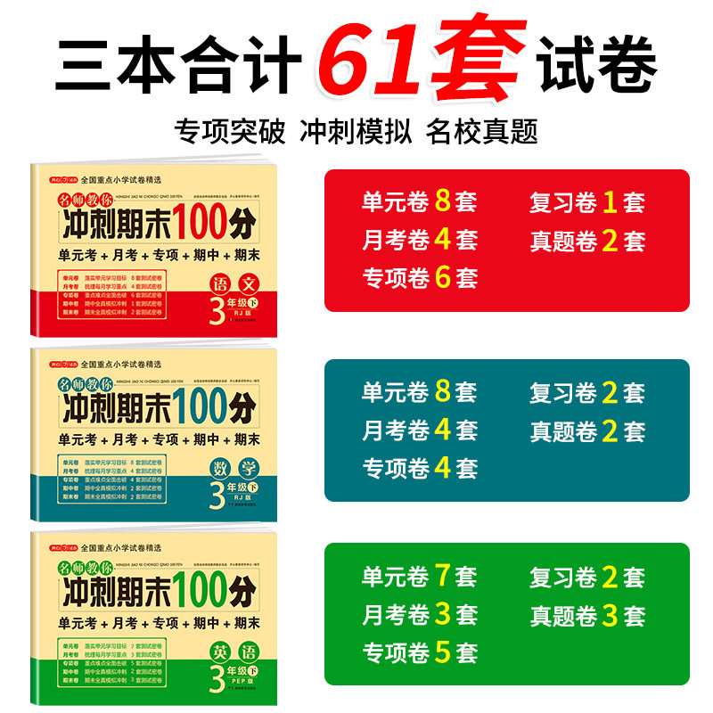 天猫冲刺期末100分 一二年级三四五六年级上册下册语文数学英语试卷测试卷全套人教版小学生123456同步练习册单元期中期末模拟考试卷子