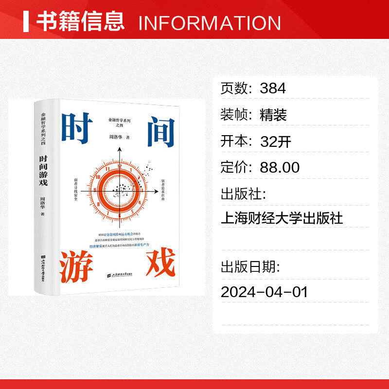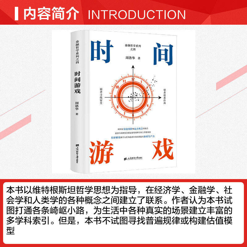 《时间游戏》是周洛华“金融哲学系列”的第四部力作,由上海财经大学出版社正版出版。本书创新性地将金融学、人类学、生物学与社会学融为一体,深入探讨货币的起源、市场的本质与估值的原理。作者以跨学科视角揭示金融现象背后的深层逻辑,提出“时间是价值的核心”这一核心命题,强调人类行为、进化心理与社会结构在金融决策中的关键作用。通过对原始部落、生物进化与市场演化的类比分析,本书打破了传统金融理论的局限,赋予金融以人文温度与哲学深度。适合对金融本质感兴趣的读者,是一部兼具思想性与可读性的前沿著作。
