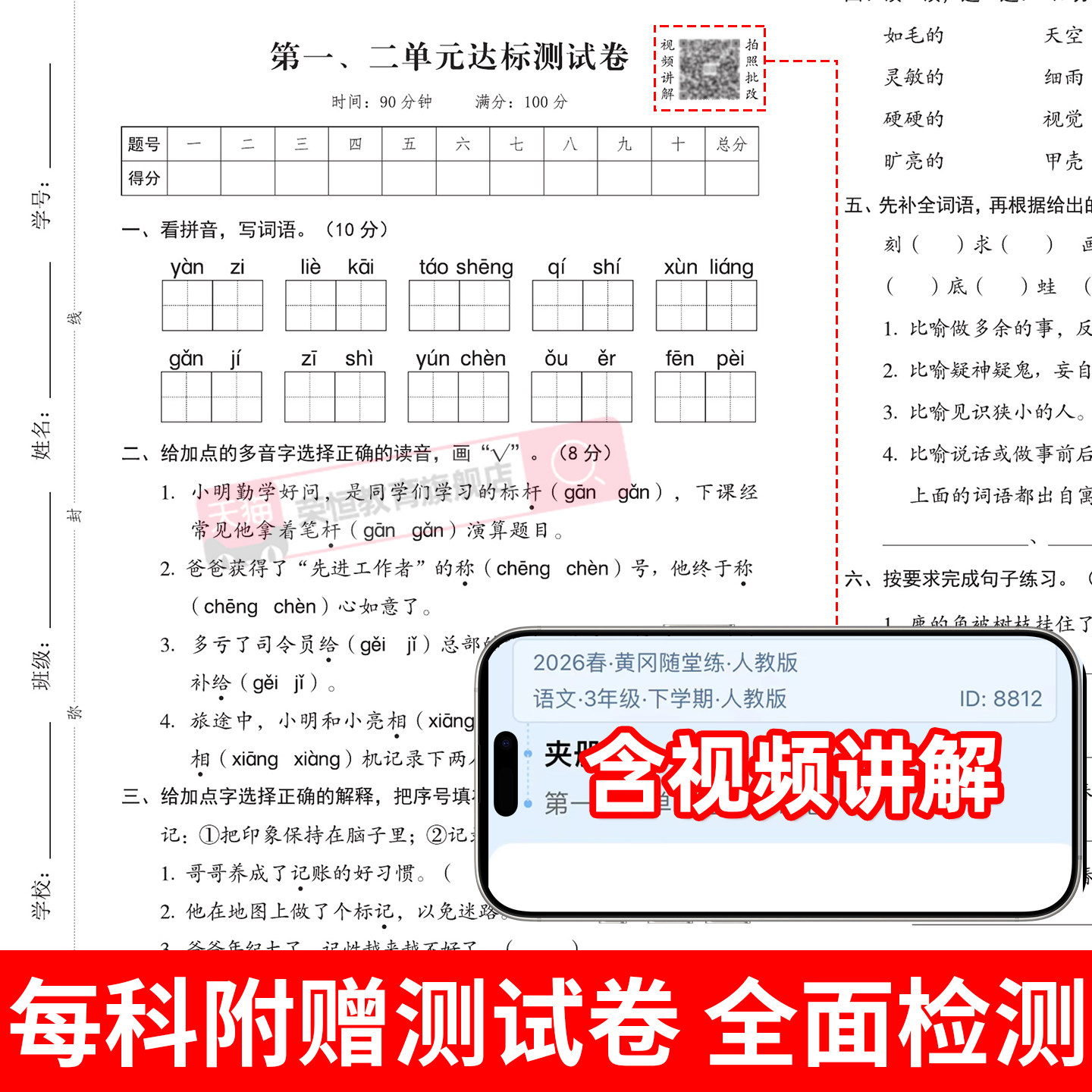 2026新版《黄冈随堂练》是一套专为小学1-6年级学生设计的同步练习册,涵盖语文、数学、英语三科,适配人教版、北师大版、苏教版等主流教材版本。丛书紧扣课本知识点,按“一课一练”形式编排,内容精炼、题型多样,注重基础巩固与能力拓展相结合。每课练习与课堂教学同步,便于学生及时复习和检测学习效果,是理想的课堂作业本和课后辅导资料。题目设计科学合理,梯度分明,兼顾趣味性与实用性,帮助学生夯实基础、提升成绩。无论是日常练习还是考前复习,《黄冈随堂练》都是小学生高效学习的得力助手。