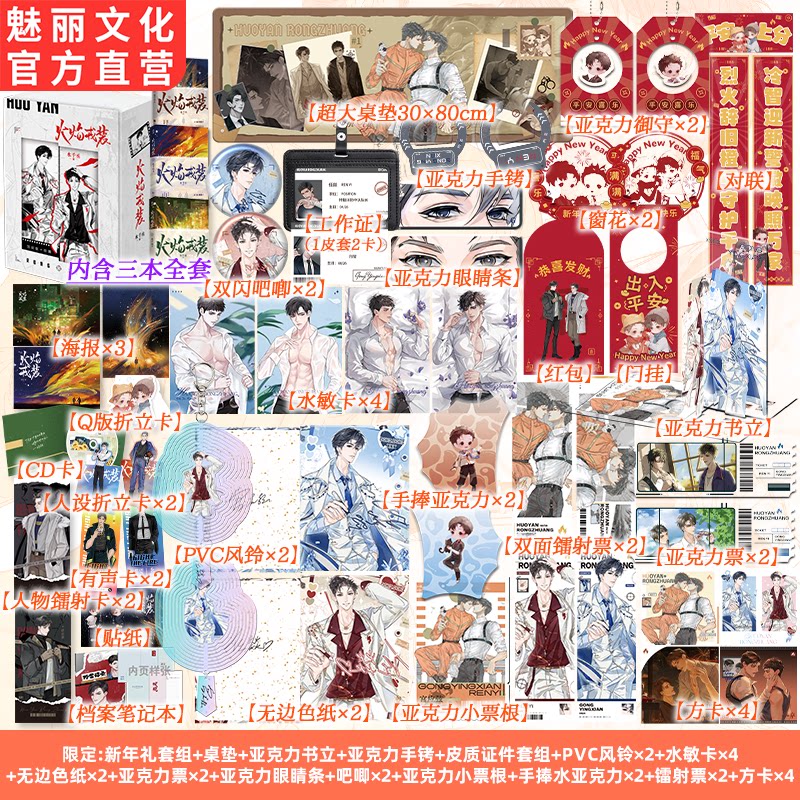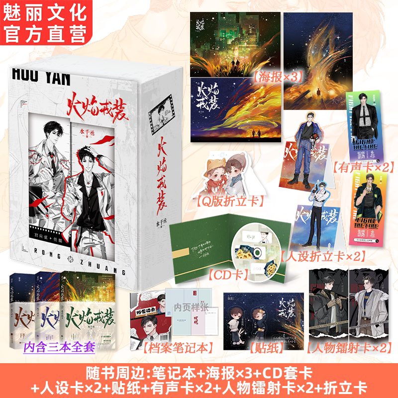 《火焰戎装》是知名作者水千丞创作的悬疑向双男主小说,隶属“188男团”系列。故事围绕冷峻消防队长宫应弦与坚韧调查员任燚展开,在扑朔迷离的火灾案件背后,揭开层层阴谋与情感羁绊。此次推出的“炽岁新焰”正版亲签礼盒,包含亲签书、限定周边、角色卡、场景插画等精美赠品,极具收藏价值。作品融合消防救援、悬疑推理与深刻情感,节奏紧凑,人物立体,深受读者喜爱。礼盒限量预售,为粉丝打造沉浸式阅读体验,既是阅读盛宴,也是珍藏佳品。