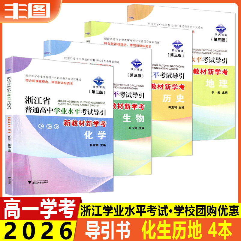 天猫任选 新版浙江省普通高中学业水平考试导引新教材新学考语文数学物理化学历史地理生物思想政治技术高一高二学考第二三版浙大育英