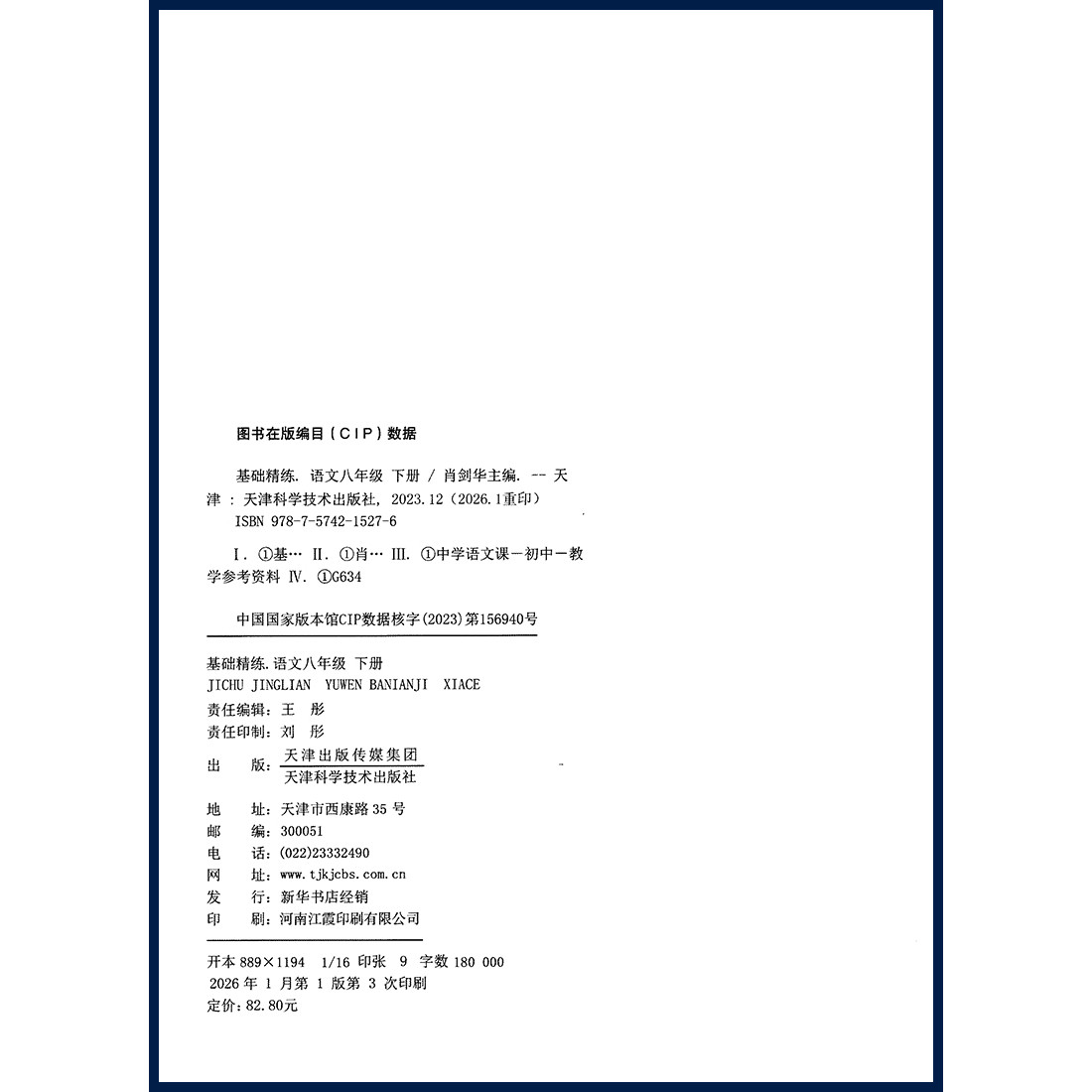 2026版《深圳专版·基础精练·语文》八年级下册(人教版)是专为深圳地区初中生打造的高效同步练习册。本书紧扣新课标与人教版教材,系统梳理课内知识点,精选典型例题,强化基础训练与能力提升。包含课课练、单元测、专项突破及调研卷,题型贴近深圳中考命题趋势,注重阅读能力与语言运用培养。配备详细答案解析,助力学生自主学习、查漏补缺。由天津科学技术出版社权威出版,内容科学严谨,是八年级学生夯实基础、高效提分的理想教辅用书。