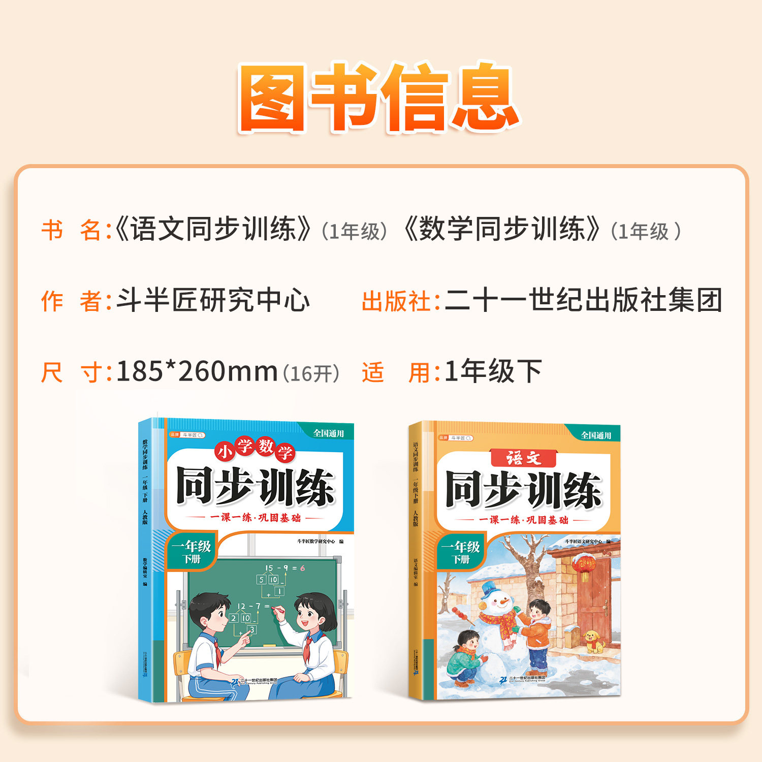 《一年级下册同步练习》(人教版)语文、数学全套练习册,紧扣小学一年级下学期教材内容,一课一练,同步课堂进度,帮助学生巩固基础知识。每课配有针对性练习题,涵盖字词、句子、阅读理解及口算、应用等核心知识点,题型丰富,难度适中。每日一练设计科学,便于学生养成良好学习习惯。同时附单元测试卷,全面检测学习效果,适合课堂练习与家庭作业使用。本练习册由一线教师编写,注重基础训练与能力提升,是小学生夯实基础、提高成绩的理想辅助资料,助力孩子轻松应对下学期学习任务。