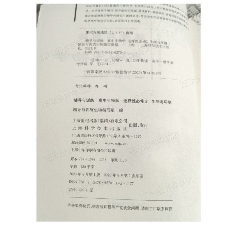 天猫新思路 辅导与训练 生物学选择性必修2生物与环境 高中生物学选择性必修第二册 新课标上海高中生物同步练习 上海科学技术出版社