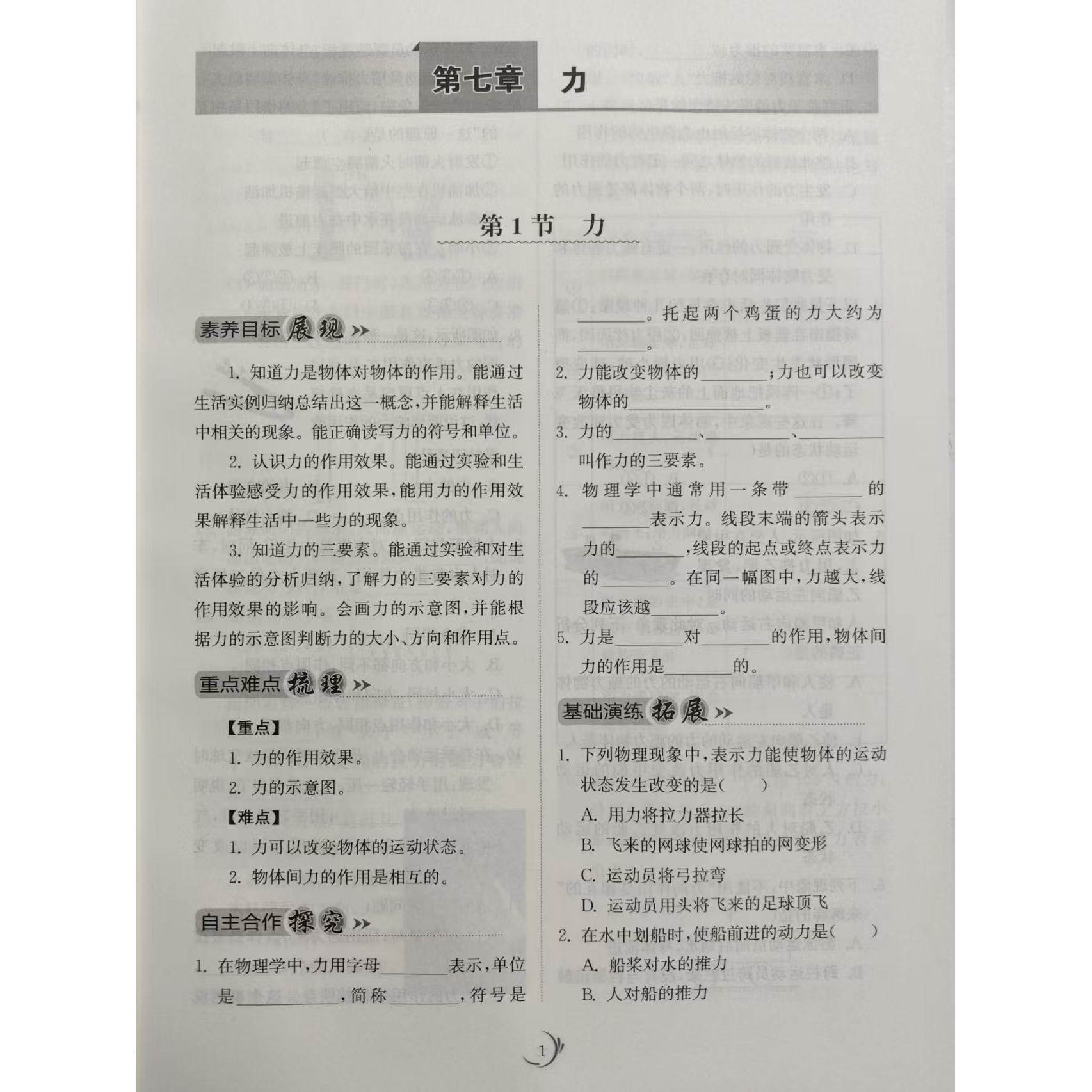 2026春配人教版《初中同步练习册·物理八年级下册》由山东科学技术出版社精心编写,严格依据人教版教材内容和课程标准设计,适用于初二下学期学生同步学习与巩固。本书紧扣教材知识点,题型丰富多样,涵盖基础训练、能力提升与拓展探究,注重理论与实践结合,强化实验探究与思维训练。每节配有课时练习、章末复习及综合测试,帮助学生及时查漏补缺,夯实基础,提升解题能力。题目难度梯度合理,贴近中考命题趋势,是学生课后练习、教师教学辅助的理想配套资料,助力八年级学生高效掌握物理知识,稳步提升学科素养。