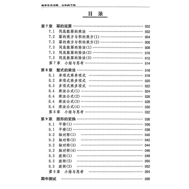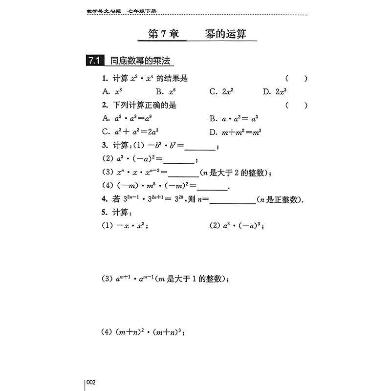 天猫2026年春新版补充习题数学七年级下册江苏凤凰科学技术出版社7年级下册苏科版初一下学期