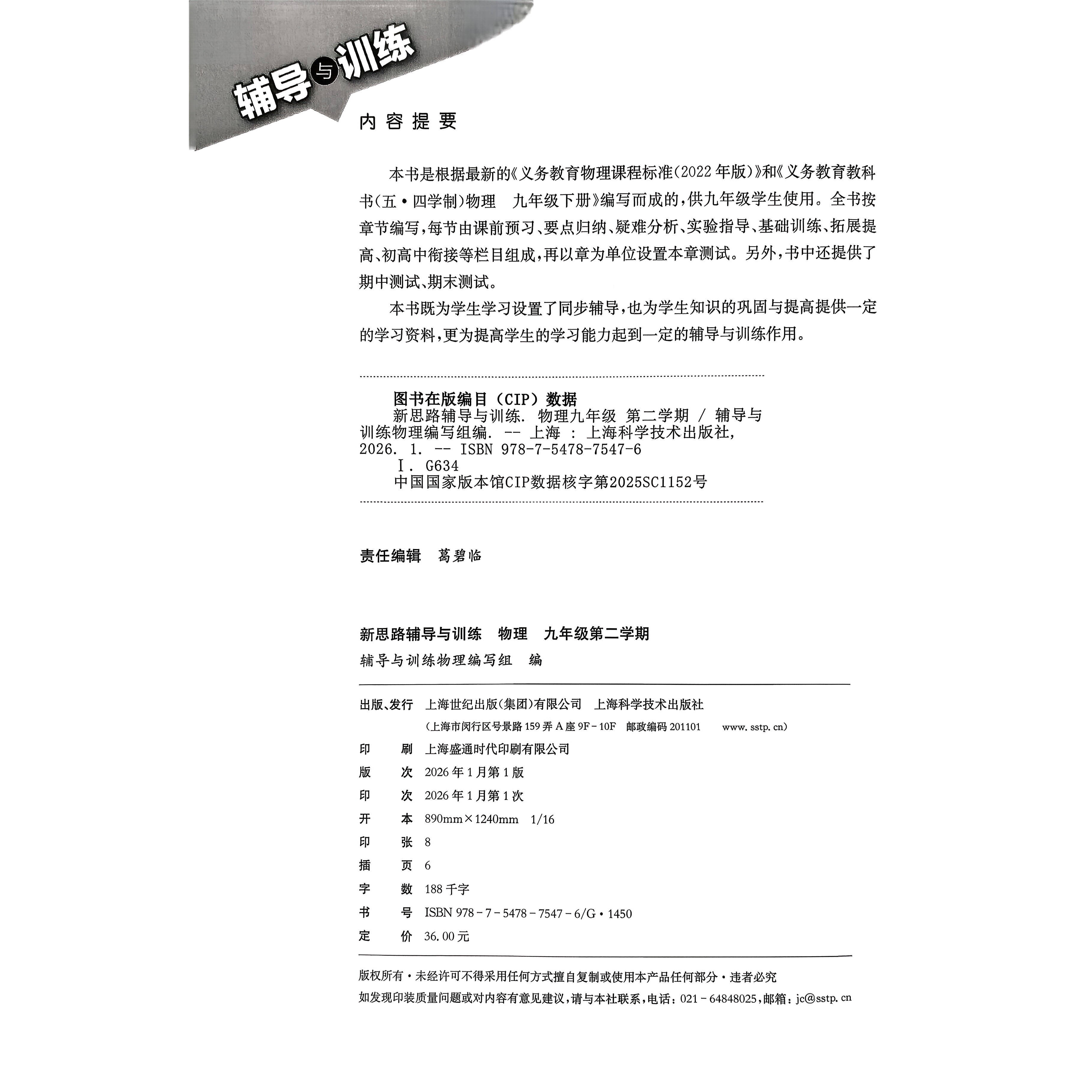 《新思路辅导与训练 物理 九年级下册 第3版》是上海地区专为九年级第二学期学生备战中考编写的物理辅导用书,由上海科学技术出版社出版。本书紧扣上海市物理课程标准与中考考纲,内容覆盖九年级下册全部知识点,结构清晰,重难点突出。书中设有知识梳理、典型例题、分层训练及综合测评等模块,注重基础巩固与能力提升相结合,并配有详细参考答案,便于学生自主学习与教师教学使用。题目设计贴近上海中考题型,强化实验探究与实际应用能力训练,帮助学生系统复习、查漏补缺,有效提升物理成绩,是中考复习的理想辅助资料。