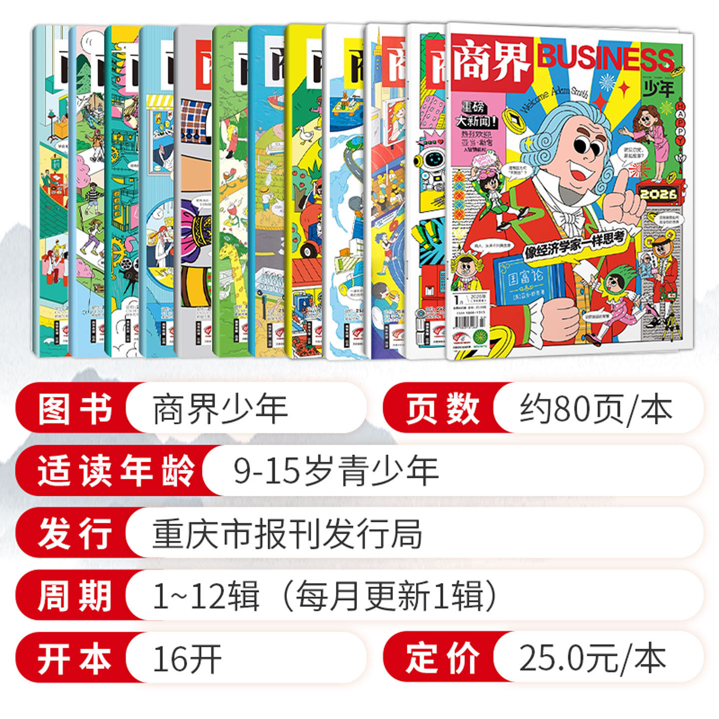 《商界少年》2026年1-9期(全年订阅)专为9-15岁青少年打造,是一本融合财经素养与综合成长的优质杂志。通过生动案例和趣味故事,引导孩子理解金钱、市场与创业,培养财商思维;同时注重逻辑推理、语言表达与目标管理能力的提升,助力专注力、情商与执行力的全面发展。内容深入浅出,兼顾知识性与趣味性,帮助小学生建立理性决策习惯,激发创新意识,在成长关键期奠定坚实的思维基础,是家庭与学校开展财商教育的理想读物。