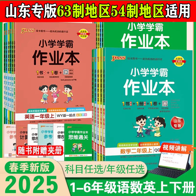 天猫山东专版pass小学学霸作业本一二三四五六年级下册专项练习册题语文数学英语人教版外研版63制54制青岛版提优课时作业本天天练习题