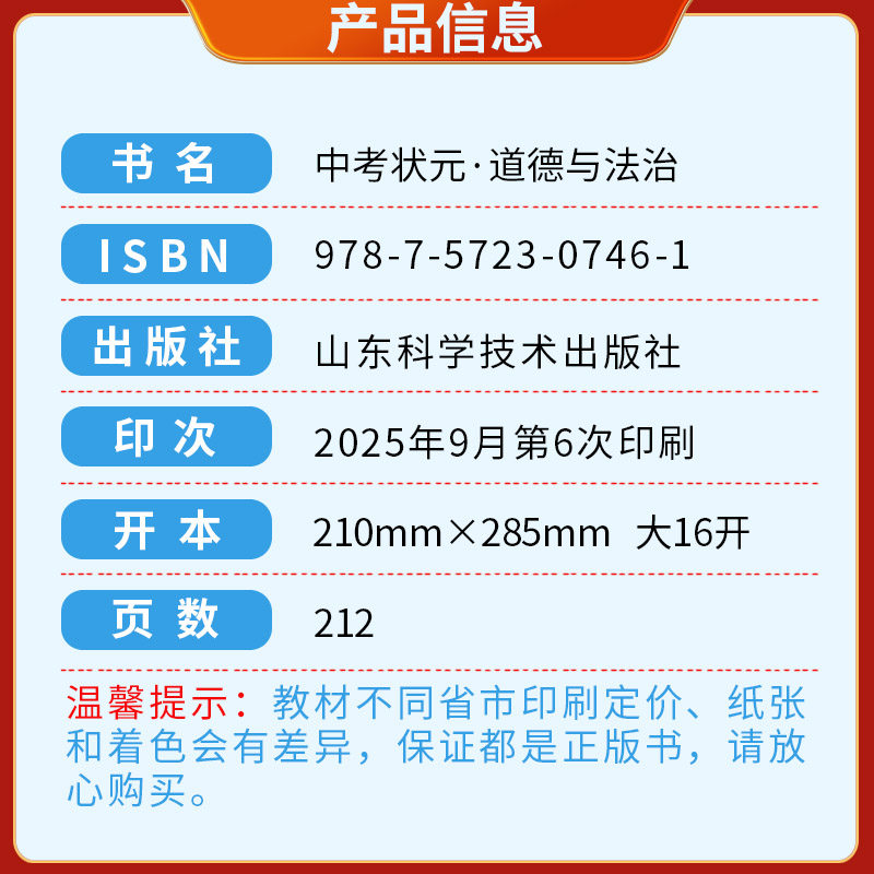 天猫2026山东中考状元新中考总复习指导用书道德与法治 六三制含单元过关练山东科学技术出版社