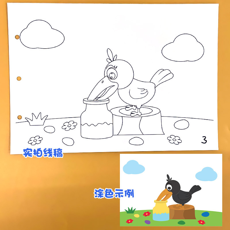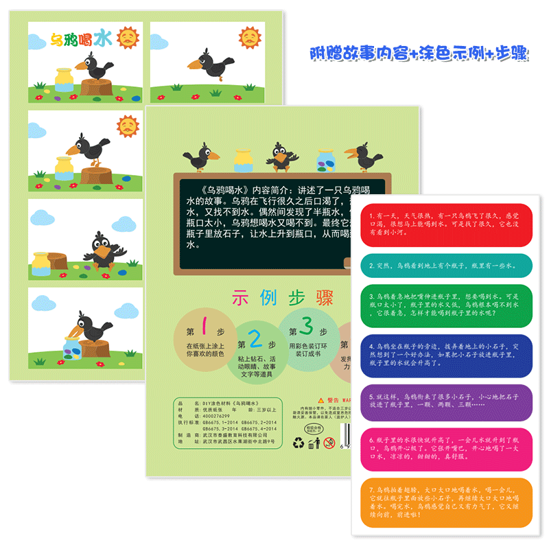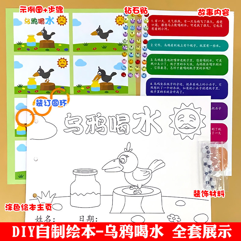 天猫乌鸦喝水幼儿园自制手工绘本阅读故事书diy材料包小学生小中班大班学前儿童图书少儿亲子创意粘贴模板a4半成品卡纸手绘涂色图画书