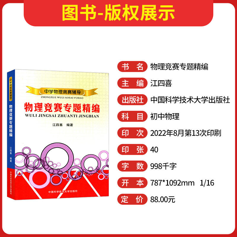 《中科大中学物理奥赛辅导》系列由江四喜编著,是中国科学技术大学出版的权威物理竞赛辅导丛书,包括《物理竞赛专题精编》和《中学奥林匹克竞赛物理教程》(程稼夫主编)等经典教材。该系列紧扣全国中学生物理竞赛大纲,系统梳理力学、热学、电磁学、光学及近代物理等核心知识,注重思维训练与方法归纳,例题典型、难度递进,辅以大量原创与经典赛题解析,帮助学生构建扎实的物理模型与解题能力。内容深入浅出,既适合竞赛入门,也适用于拔高冲刺,深受广大师生好评,是备战物理奥赛的必备工具书。