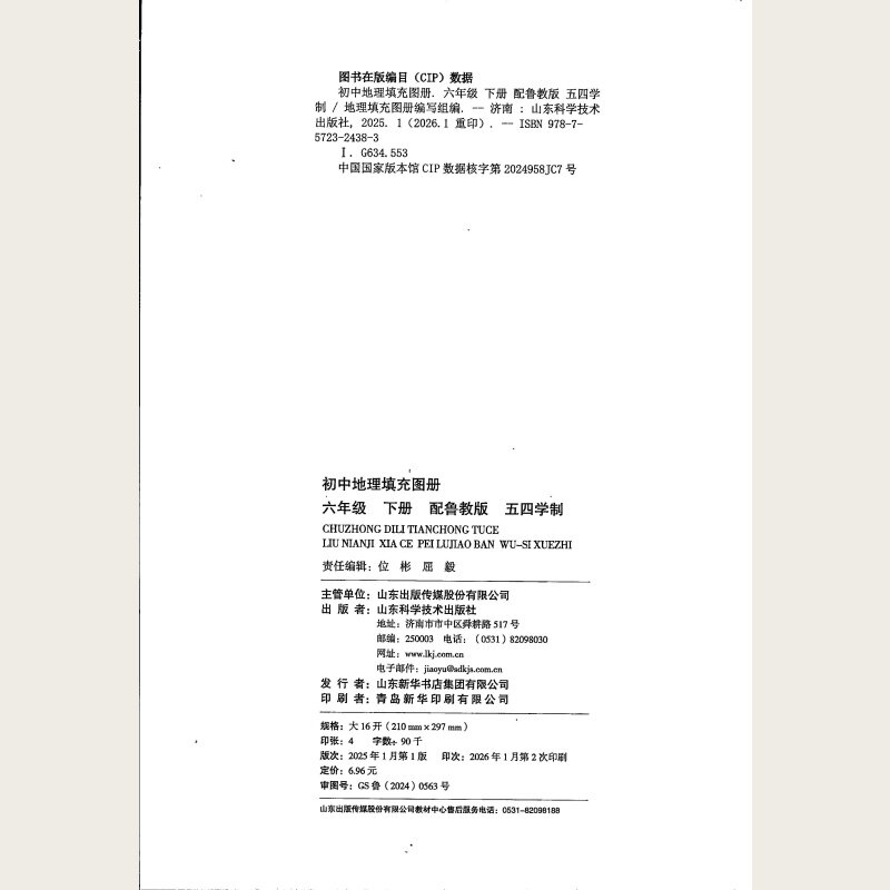 2026五四制地理6六年级下册初中地理填充图册山东科学技术出版社
