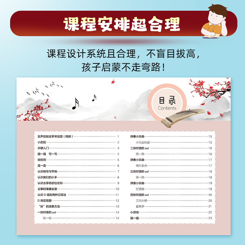 天猫少儿古筝简易教程 1 儿童古筝初学 零基础入门练习曲教材教程曲谱 古筝入门启蒙图书 儿童古筝教学书 自学古筝曲集乐理知识琴谱书