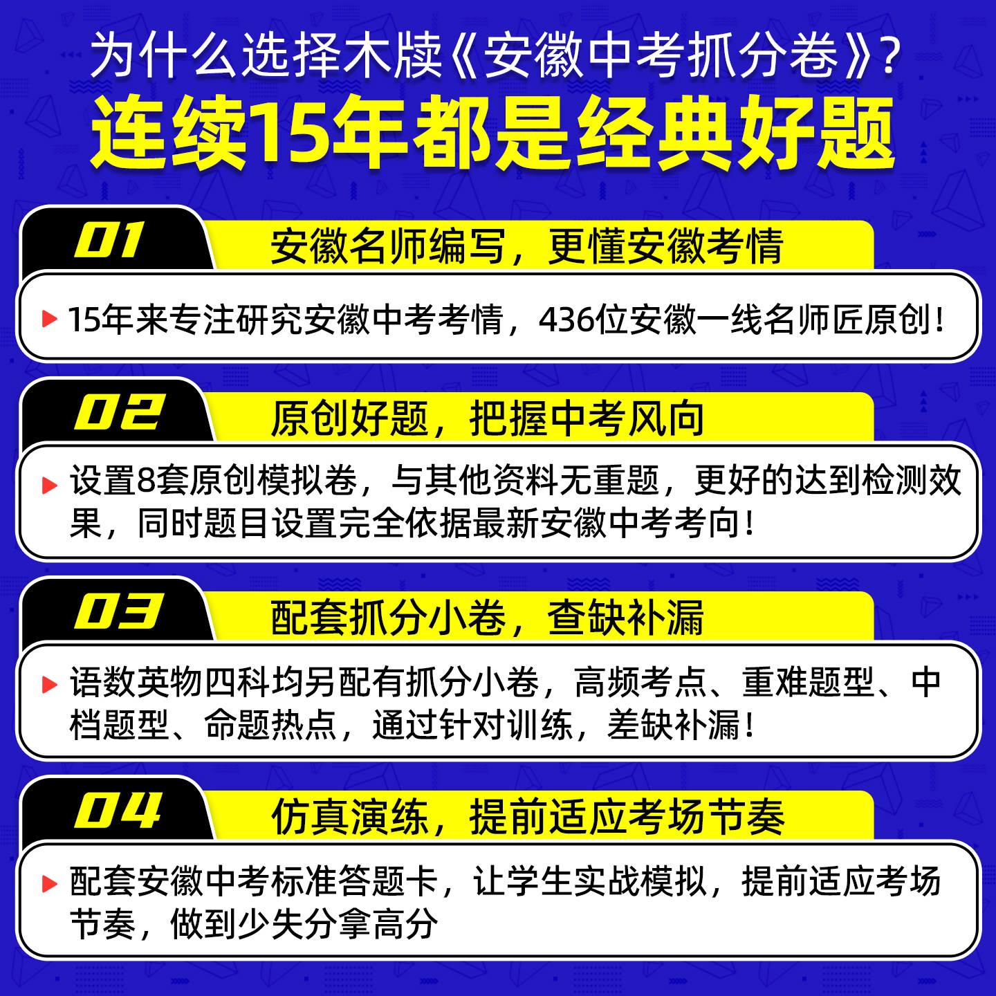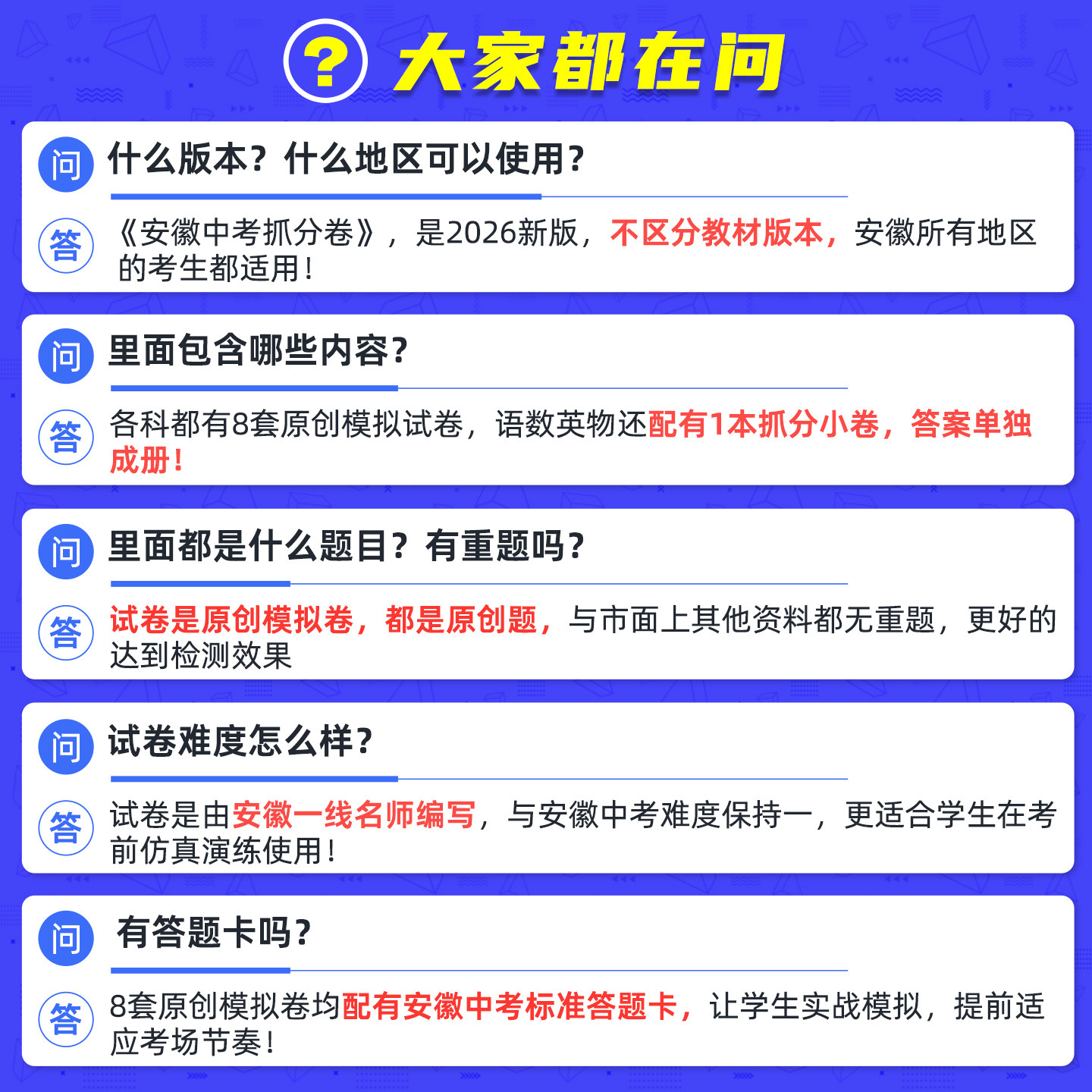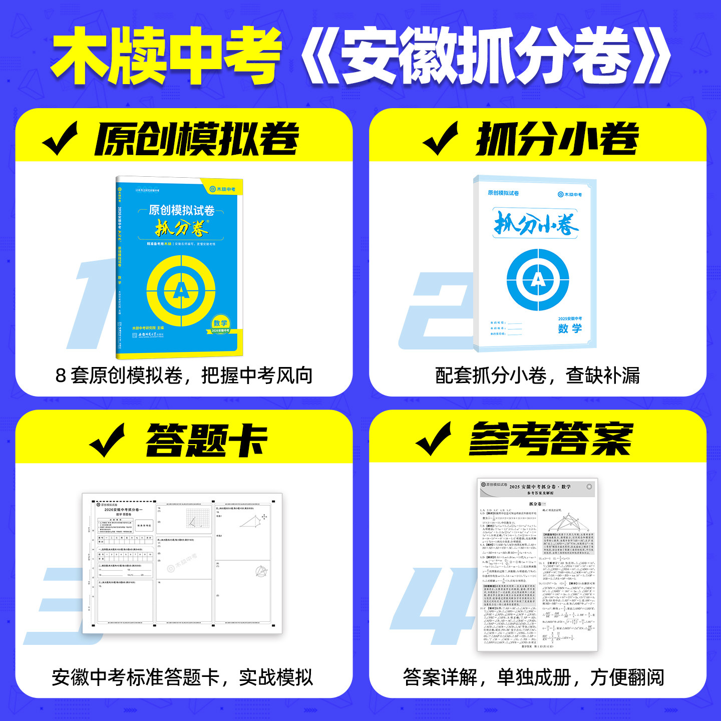 天猫木牍中考2026安徽中考抓分卷初三九年级总复习模拟试卷语文数学英语物理化学政治历史原创预测试卷全套冲刺押题卷练习册练习题精选
