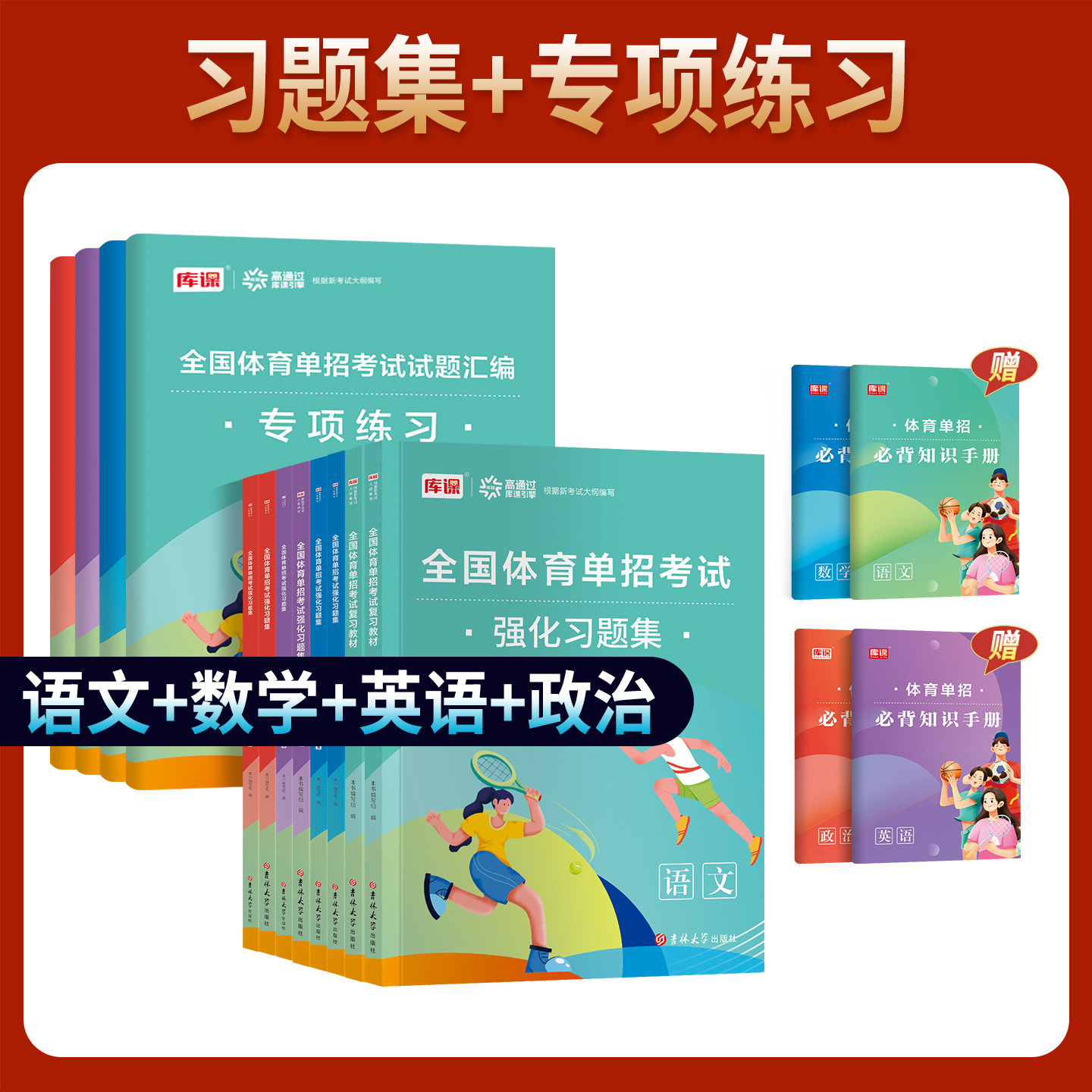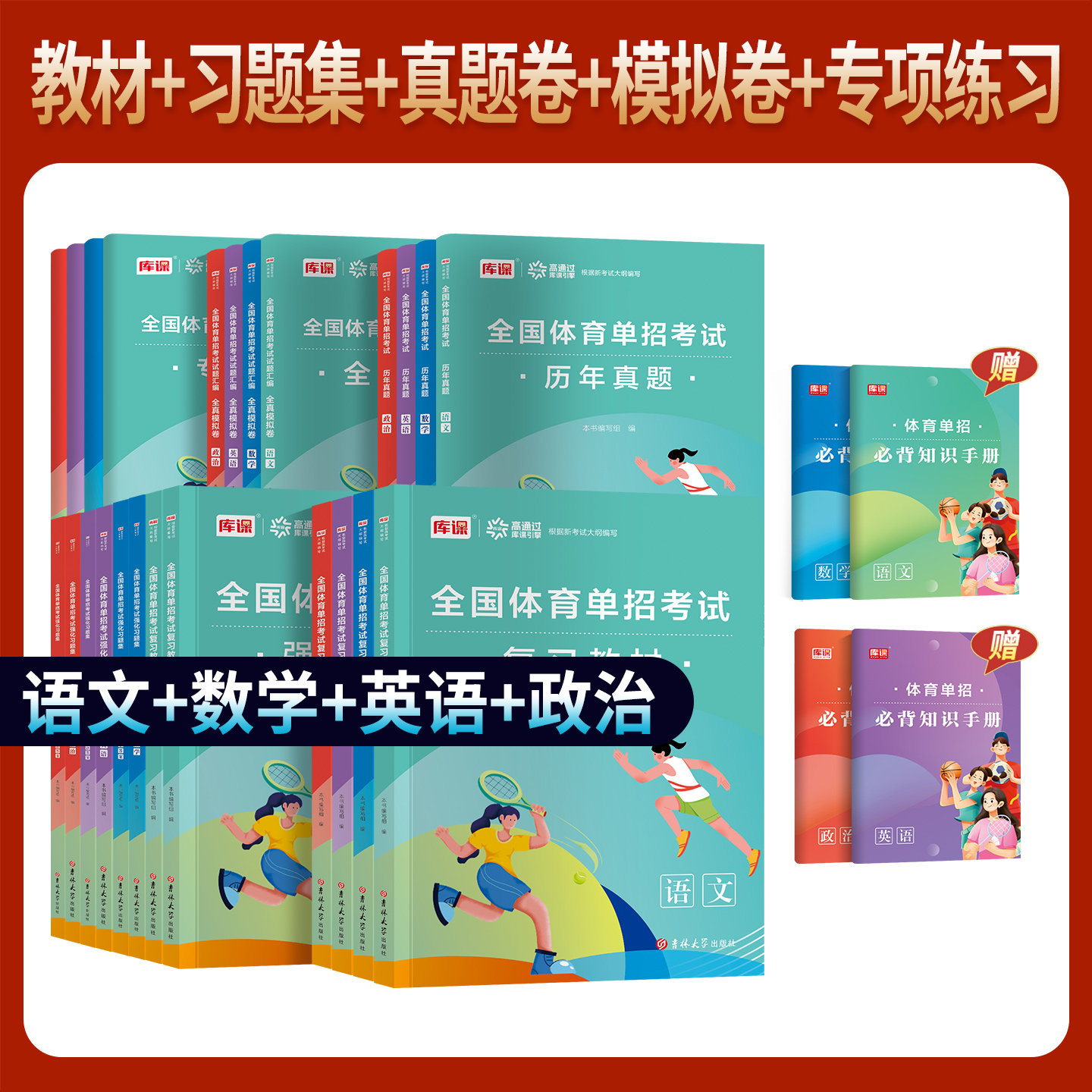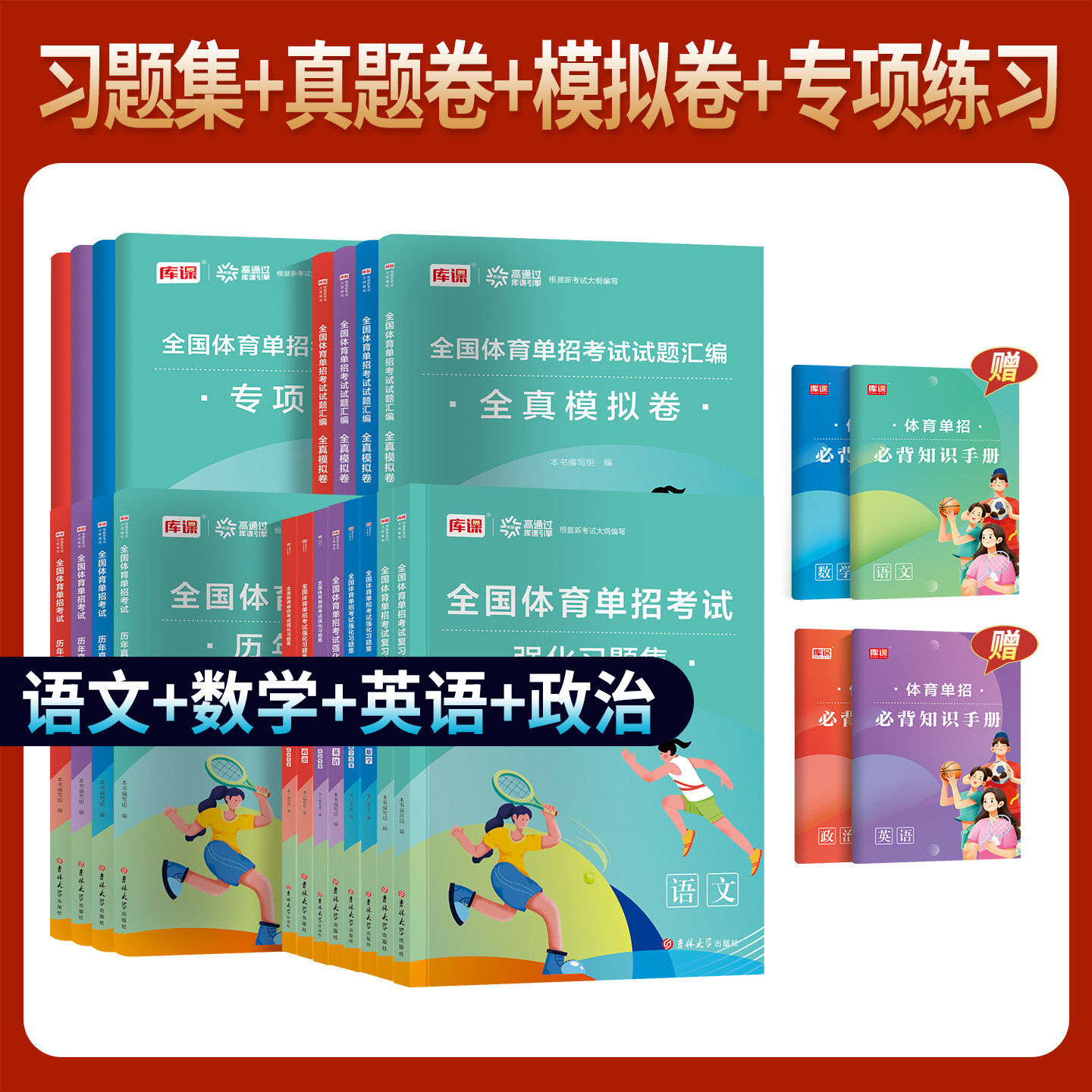2027年全国体育单招文化课考试复习资料全面涵盖语文、数学、英语、政治四科,专为体育特长生量身打造。教材系统梳理考纲要点,突出重点难点,配套专项练习与强化同步习题集,帮助考生夯实基础、提升应试能力。全真模拟试卷高度还原考试题型与难度,历年真题汇编助力熟悉命题规律。资料还附有近年录取分数线参考,便于考生合理定位、科学备考。内容精炼实用,讲练结合,是备战2027年体育单招文化课考试的高效利器,助力广大体育学子顺利通过文化关卡,实现升学梦想。