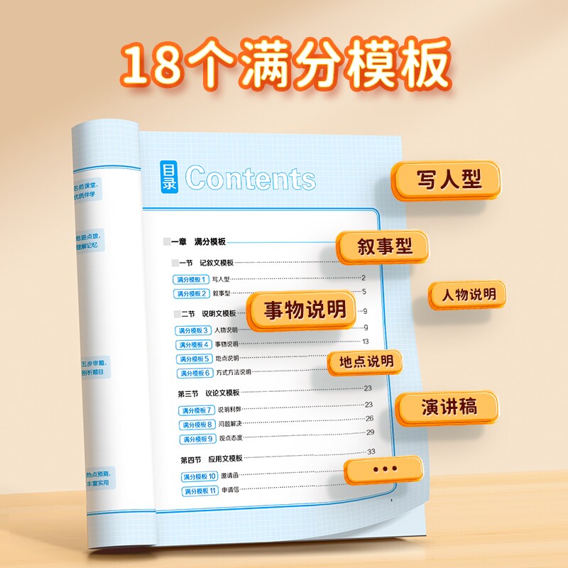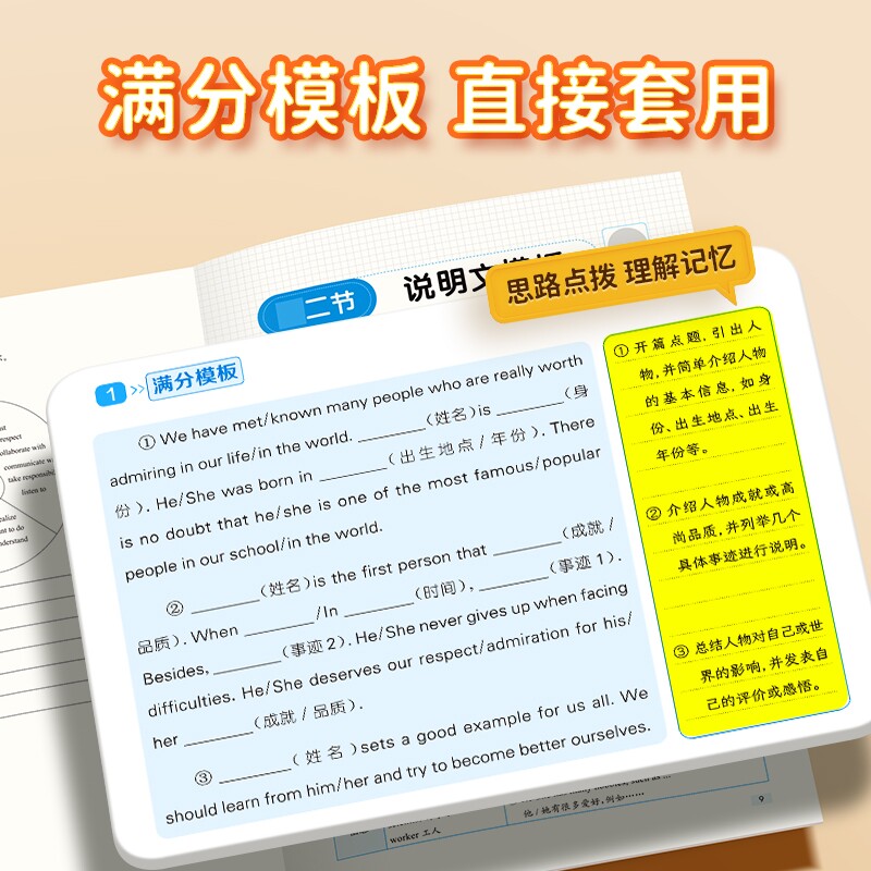 天猫【易蓓直营】初中英语万能作文模板新满分作文写作技巧七八九年级中考作文高分素材考题预测热点时文加分句型冲刺备考英语资料