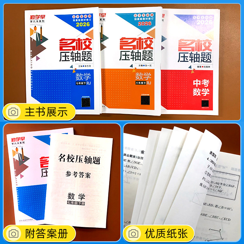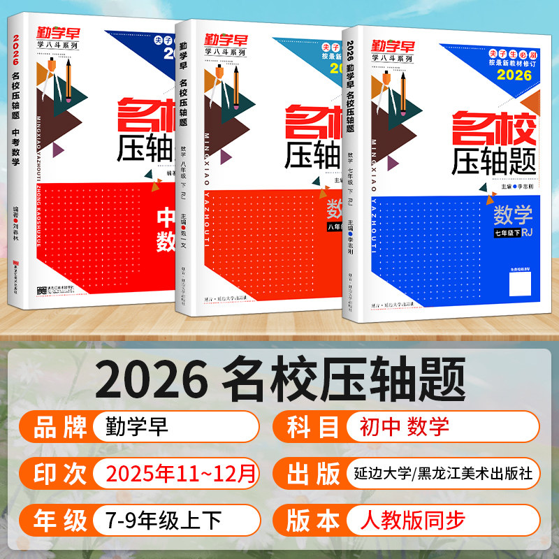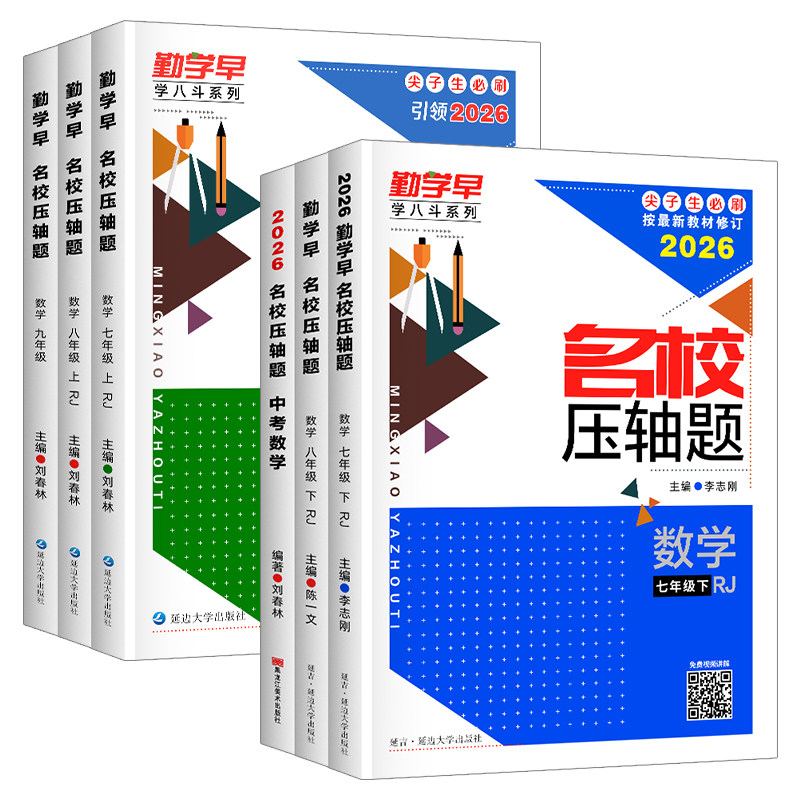 2026新版《勤学早名校压轴题》数学系列,专为初中七至九年级学生打造,涵盖上下册内容,聚焦名校高频考点与核心压轴题型。本书精选全国重点中学经典名题,系统梳理知识体系,强化培优训练,注重思维拓展与解题技巧提升。每章设置“考点精讲—典例剖析—分层训练—综合突破”四大模块,讲练结合,难度递进,助力尖子生突破瓶颈。题目设计紧扣新课标与中高考命题趋势,突出综合性、探究性与创新性,是学生专题复习、冲刺高分的必备强化训练册,助力学子夯实基础、挑战高分、圆梦名校。