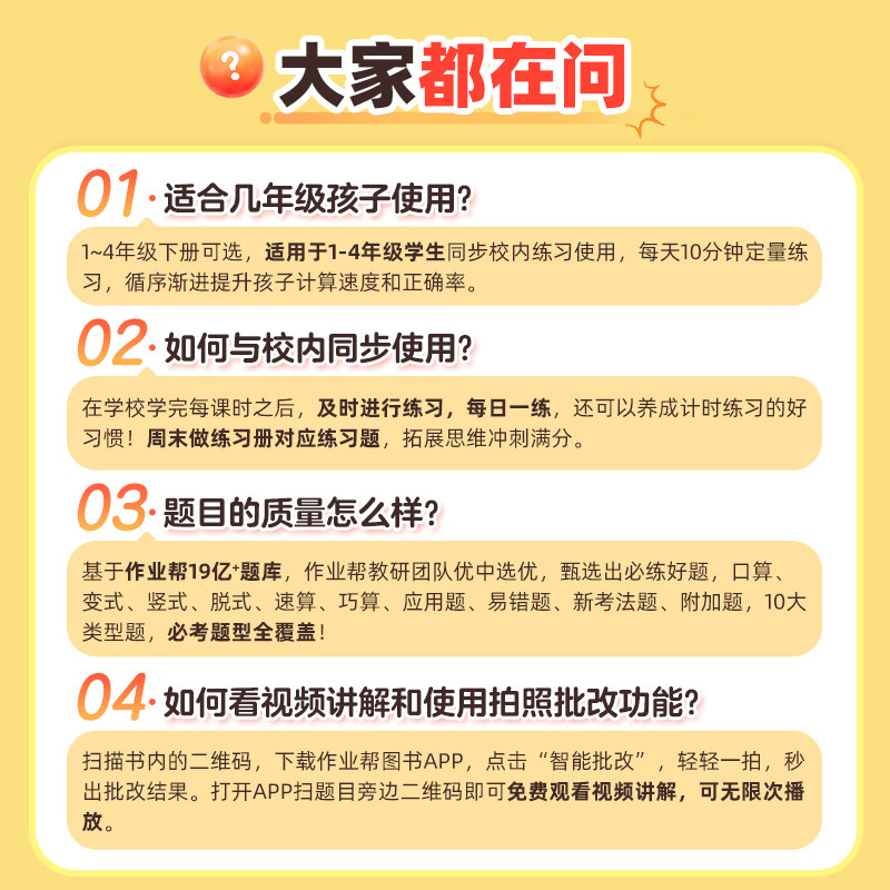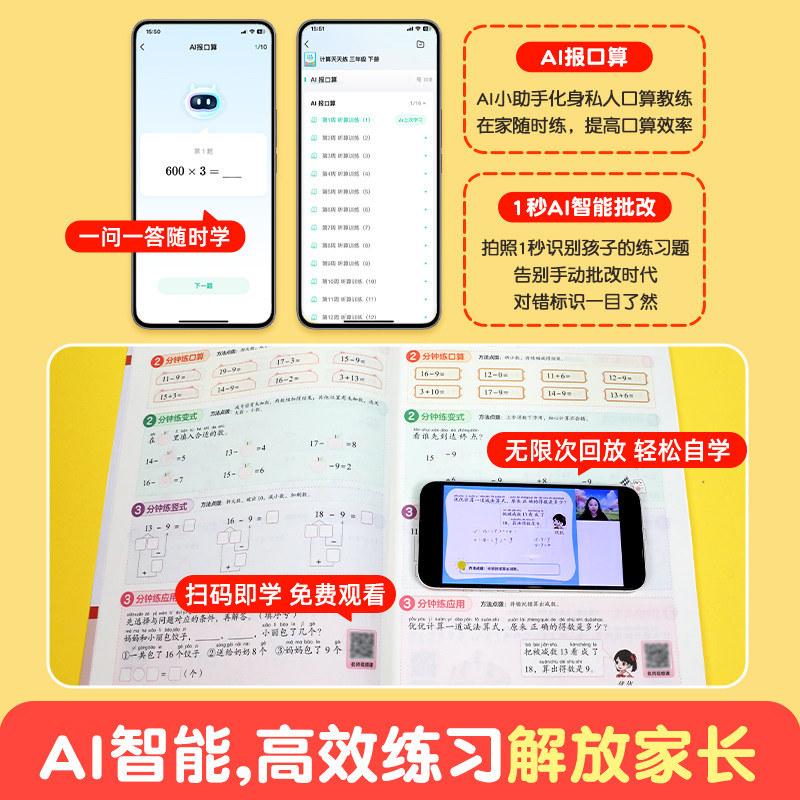 2026新版《作业帮同步计算天天练》专为小学一至四年级学生设计,紧扣人教版教材,系统覆盖下册数学核心计算题型。内容包含竖式、脱式、口算、变式题及应用题等必考题型,分层训练,强化计算能力与解题思维。同时配套语文同步字帖,同步课本生字,练字与学习两不误。每日一练,题型丰富,难度递进,帮助学生夯实基础、提升速度、培养数感。精选高频考点,精准对标考试要求,是课后巩固、假期衔接的理想教辅。科学编排,寓练于学,助力孩子轻松掌握计算技巧,稳步提升学业成绩。