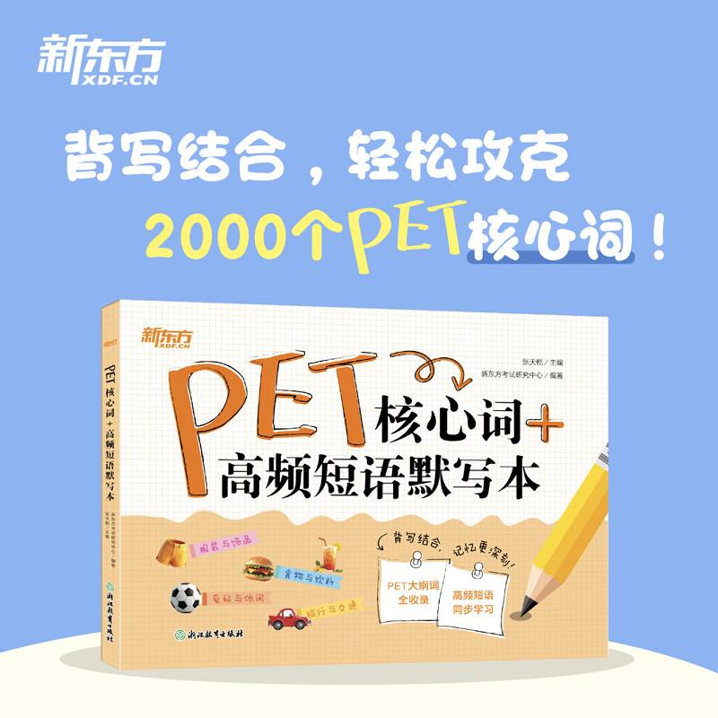 【新东方官方正版】剑桥PET官方模考题精讲精练2+核心词高频短语默写本2册套装,原版引进剑桥大学出版社Trainer 2权威资源,专为备考PET及朗思B1级别考生打造。模考题集含6套全真模拟题,紧扣官方题型与评分标准,详解答题技巧,助力熟悉考试节奏;词汇短语默写本精选高频核心词与实用表达,背练结合,强化记忆与应用能力。两册相辅相成,科学备考路径清晰,既提升语言综合运用水平,又夯实基础词汇功底,是考生高效通关的理想学习伴侣。新东方官方正版保障,内容权威可靠,值得信赖。