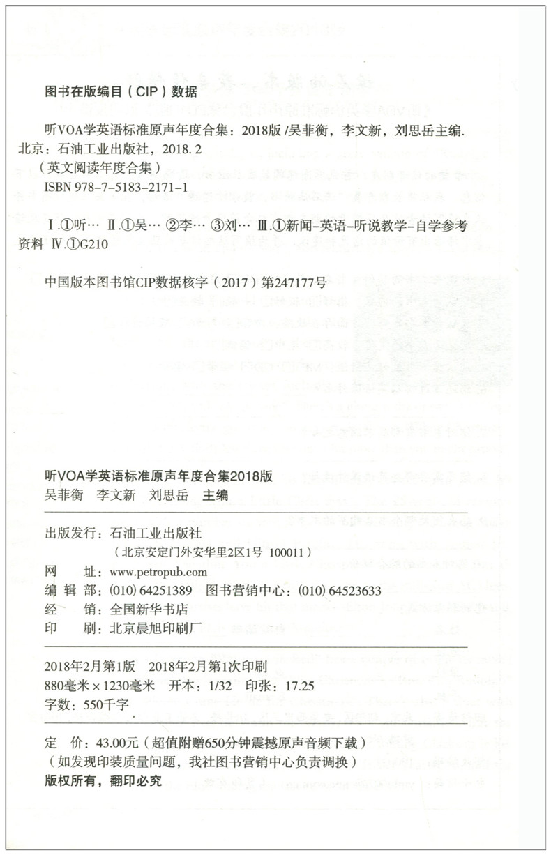 天猫全新正版 听VOA学英语标准原声年度合集2018版 新闻原声原文中英文对照 学习英语精读泛读词汇译文技巧 英语考题源 石油工业出版社